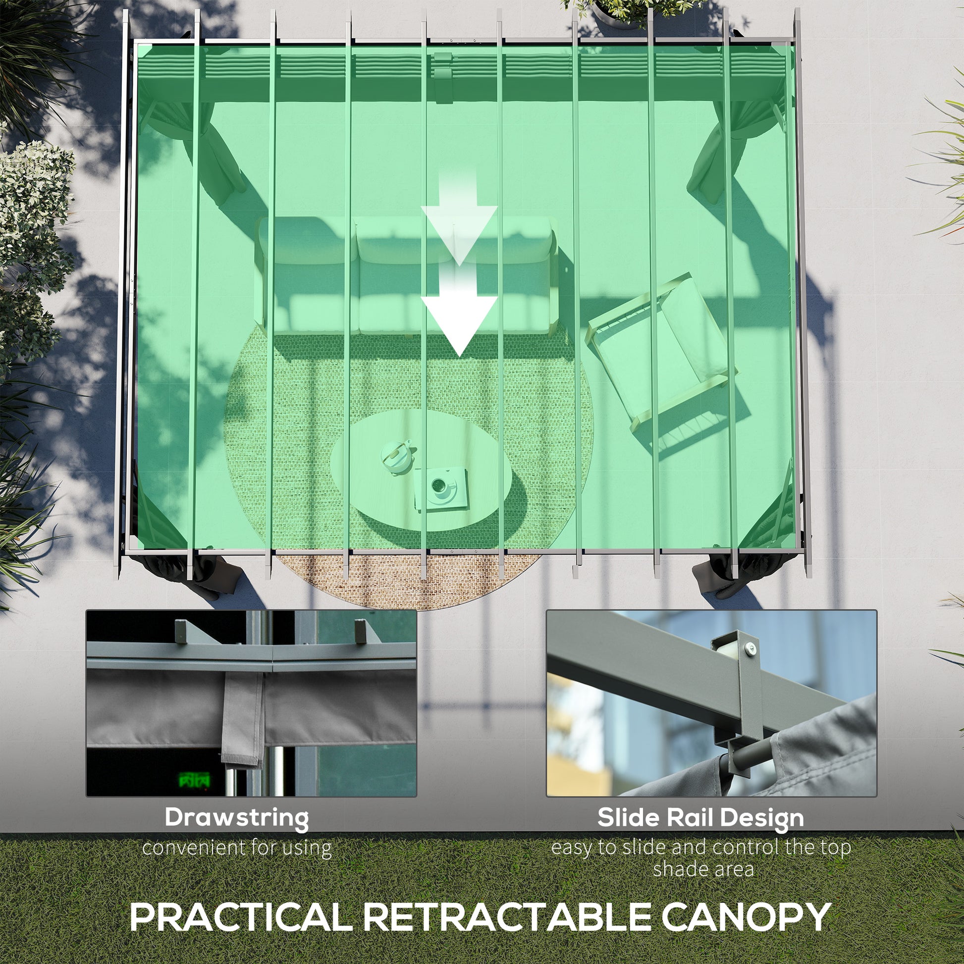 3.6 x 3 m Aluminium Pergola with Retractable Roof Canopy, Curtains