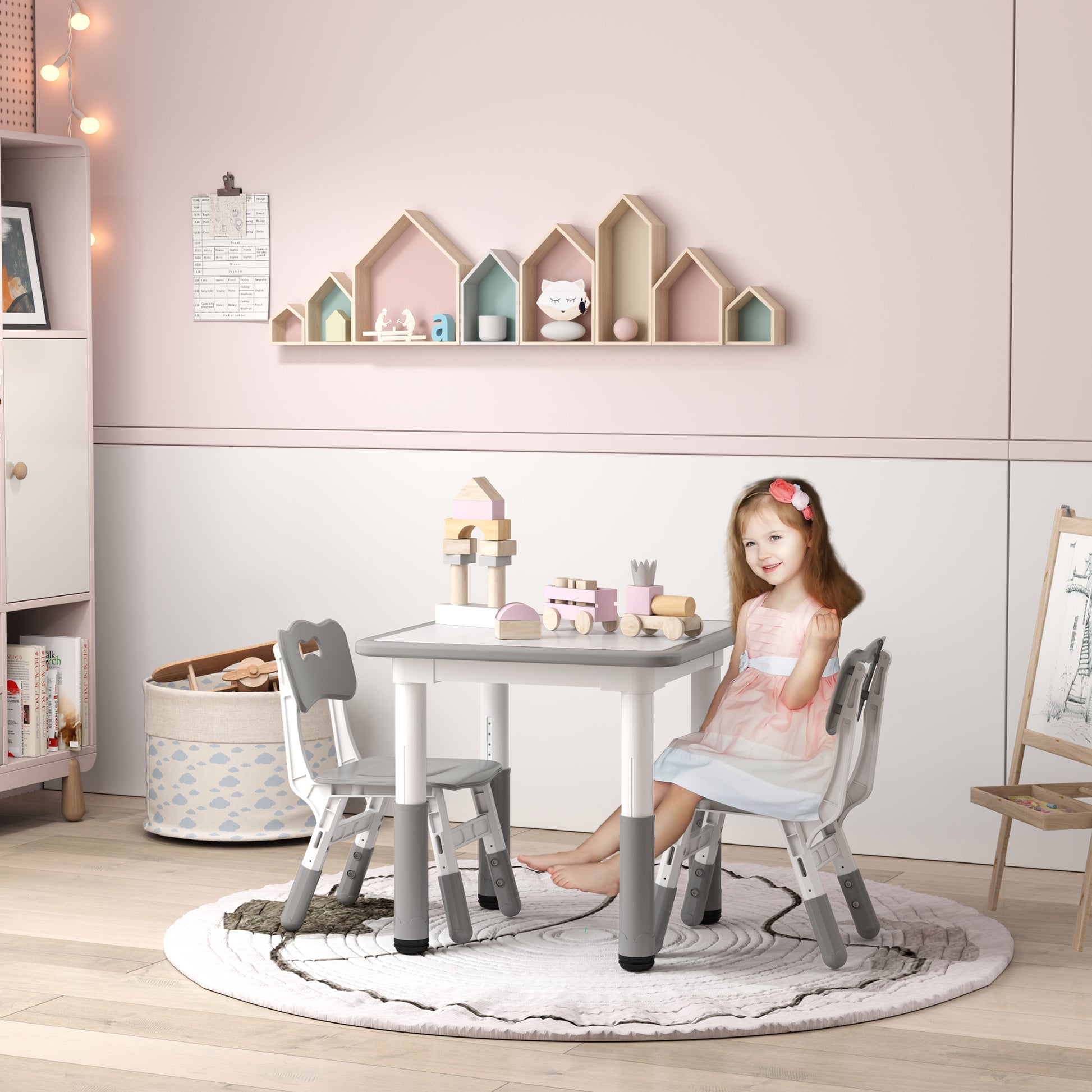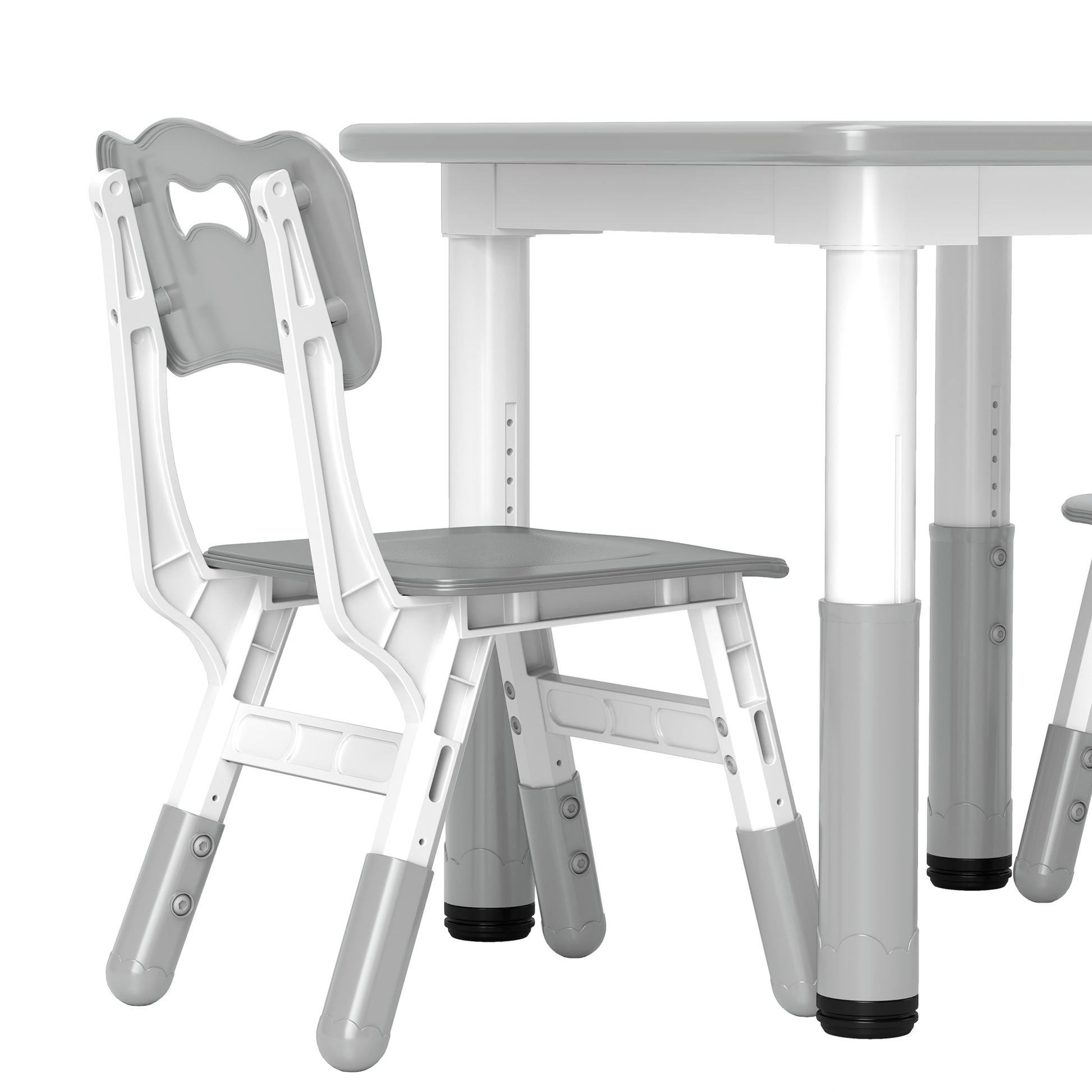 3 Pcs Height Adjustable Kids Table and Chair Set for Playroom - Grey