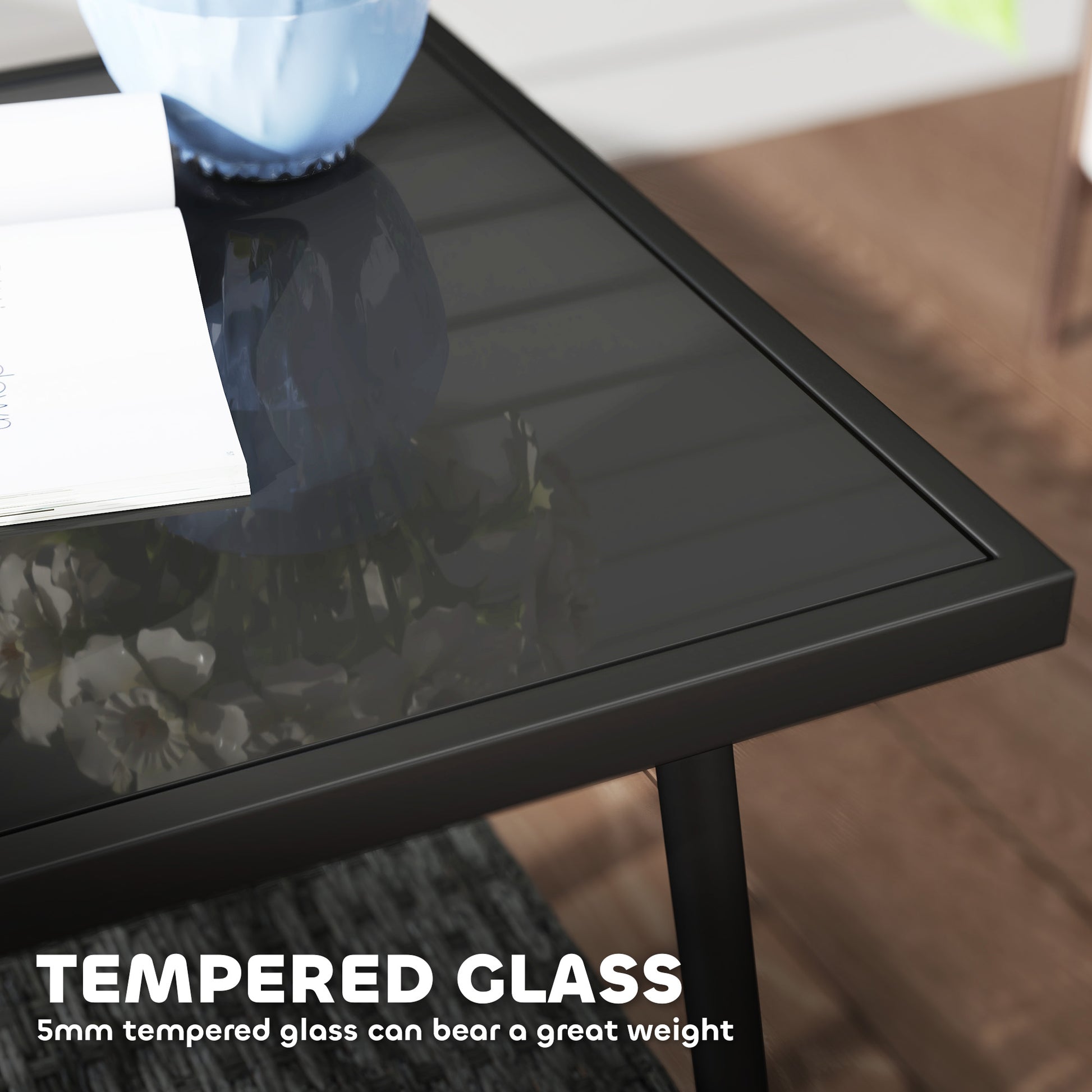 - Safe tempered tabletop and bottom shelf provide convenient storage