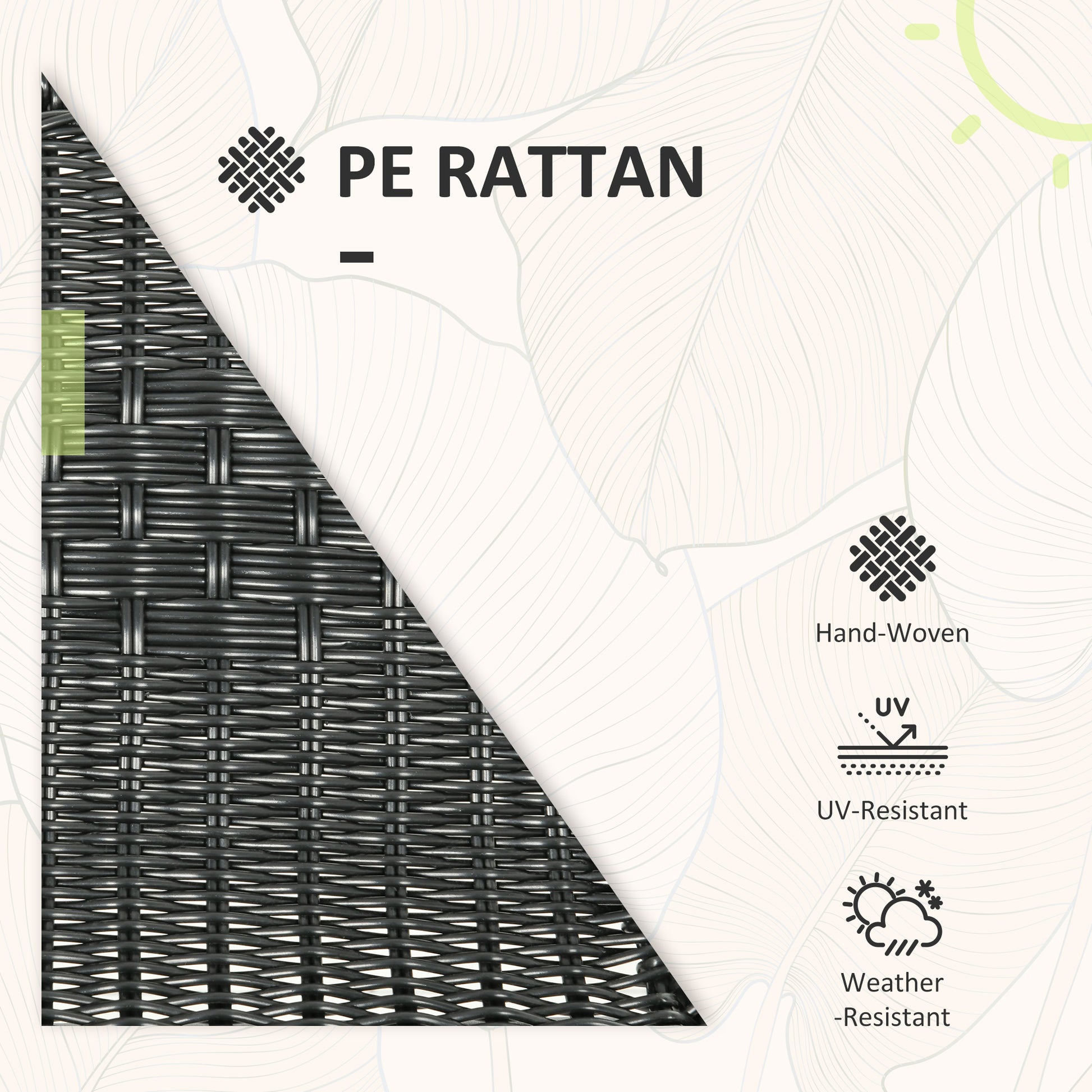 - Materials: PE Rattan, Steel, Tempered Glass