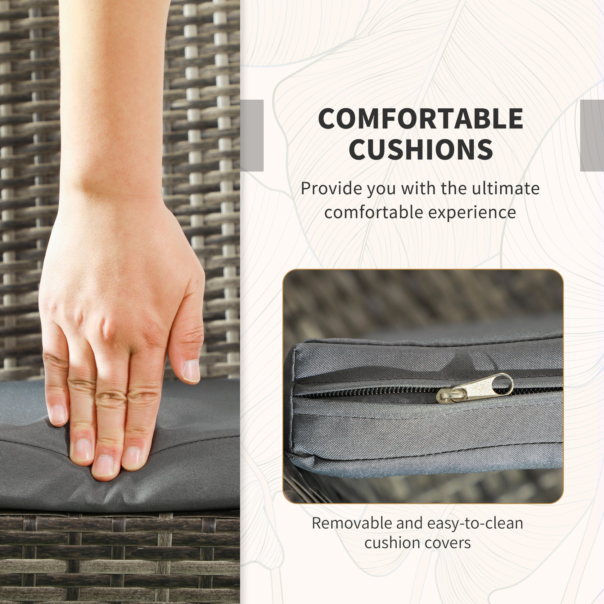 3 Pieces Outdoor Rattan Bistro Set, Patio Wicker Balcony Furniture, Conservatory Sets w/ Coffee Table and Cushioned Chair, Mixed Grey