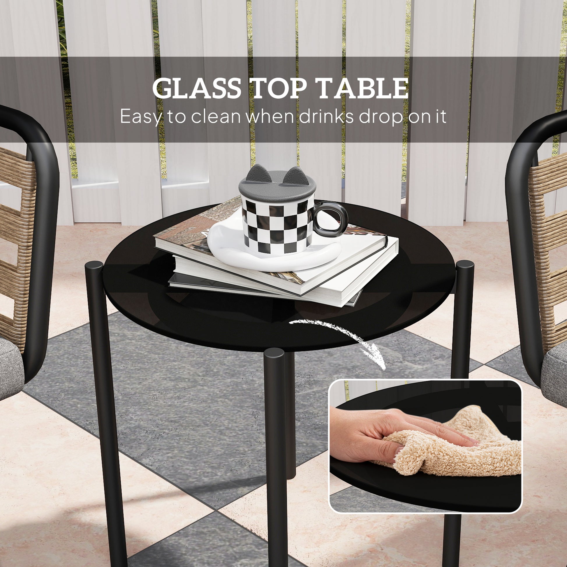 - Tempered glass top table, easy to clean