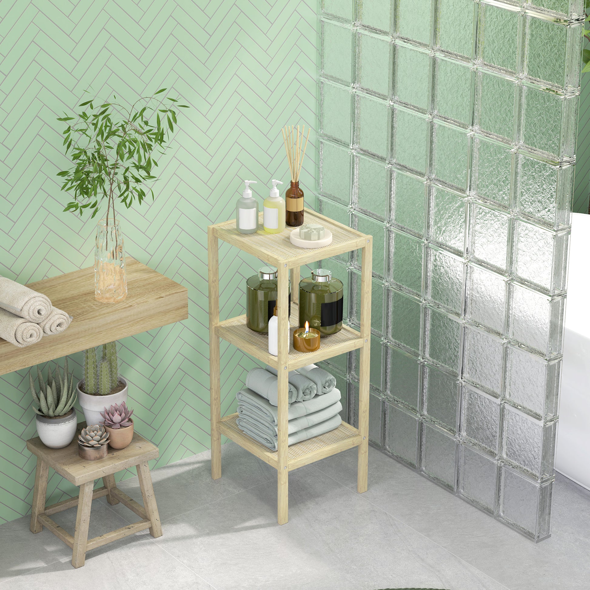 3-Tier Bathroom Storage Shelving Unit, Freestanding Bamboo Shelves, Natural