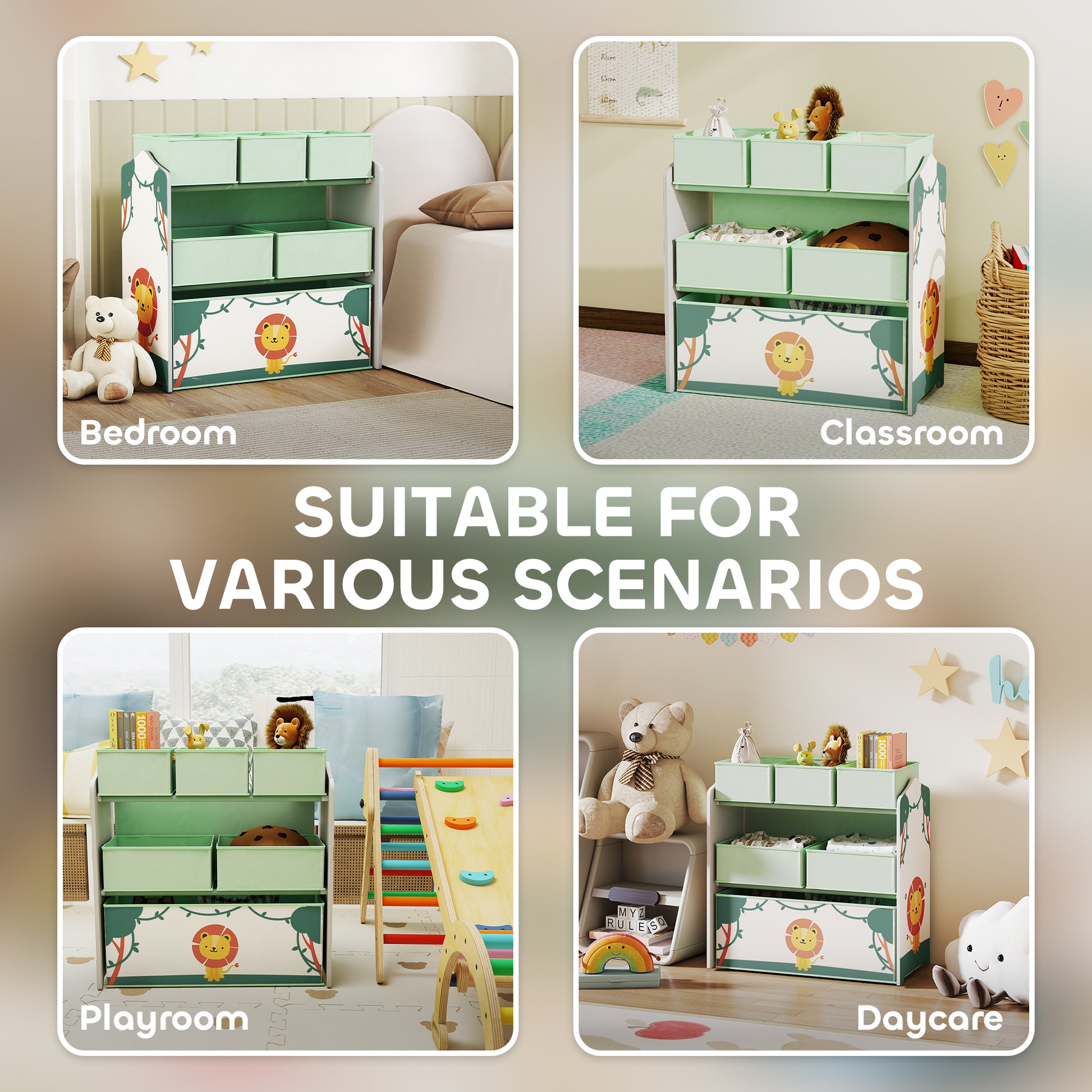 3-Tier Kids Storage Shelf with 6 Removable Fabric Boxes, Green