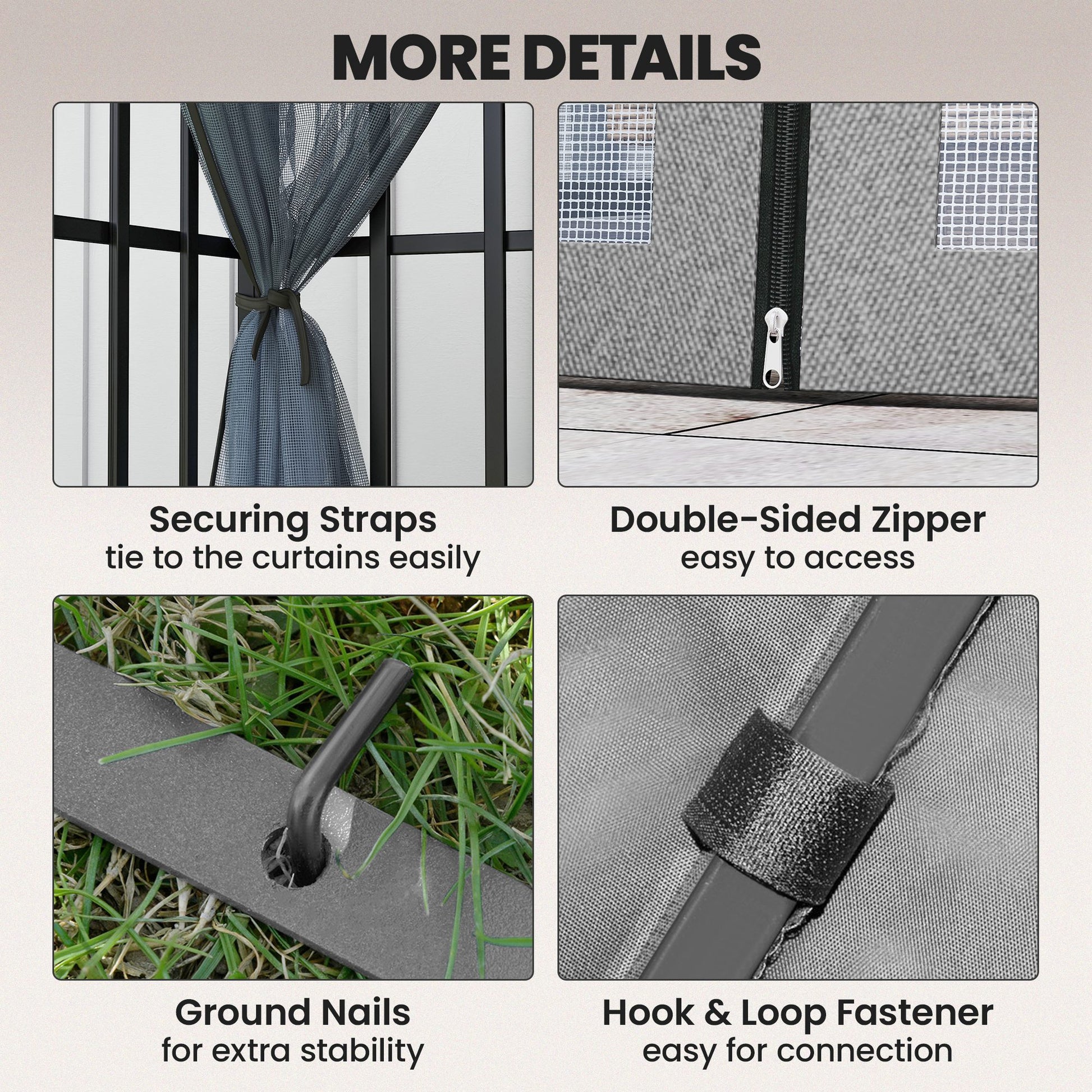 This 3 x 3(m) gazebo is a great way to expand outdoor space. The steel frame makes it extra sturdy, formed into a spacious 3(m) x 3(m) size - you can host plenty of people at once. The polyester canopy creates mild shelter below, with its two-tier design helping to promote airflow in and out. Mesh netting to shield you from annoying bugs and more. Complete with anchoring accessories. You deserve some comfort in the sun: create your own personal oasis with our permanent gazebo.Specifications