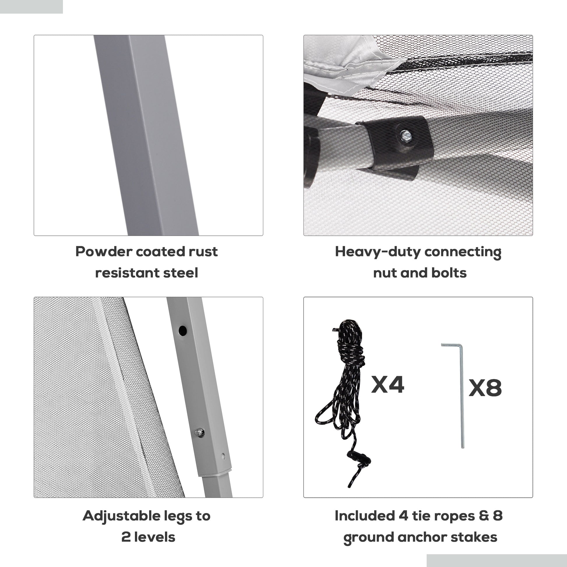 - Powder coated steel frame, ensures a sturdy upright structure all-day long