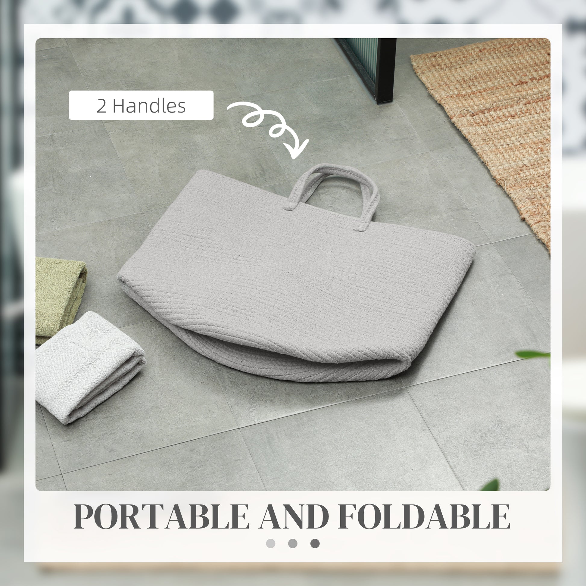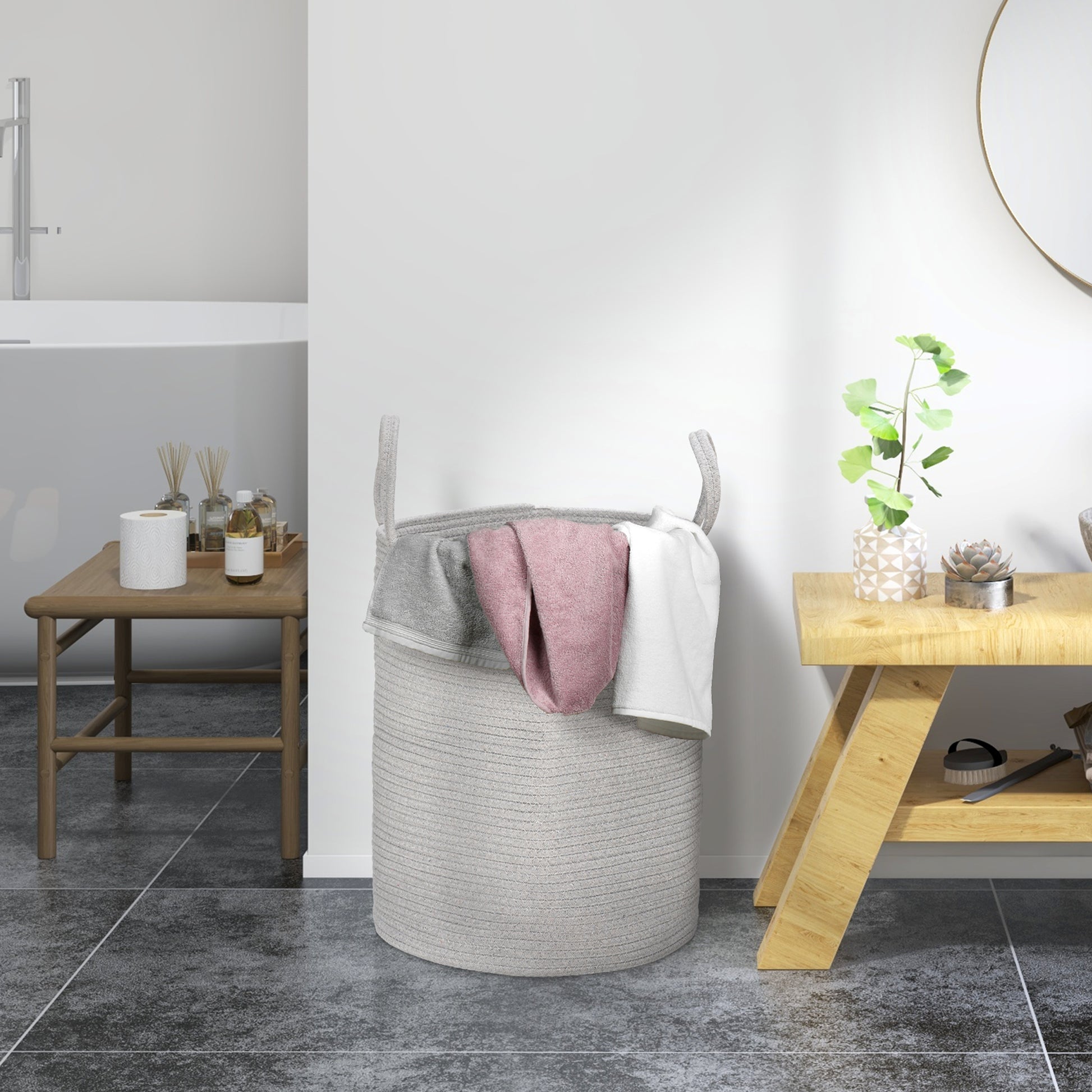 36L Cotton Rope Laundry Basket with Handles for Pillows Clothes Grey