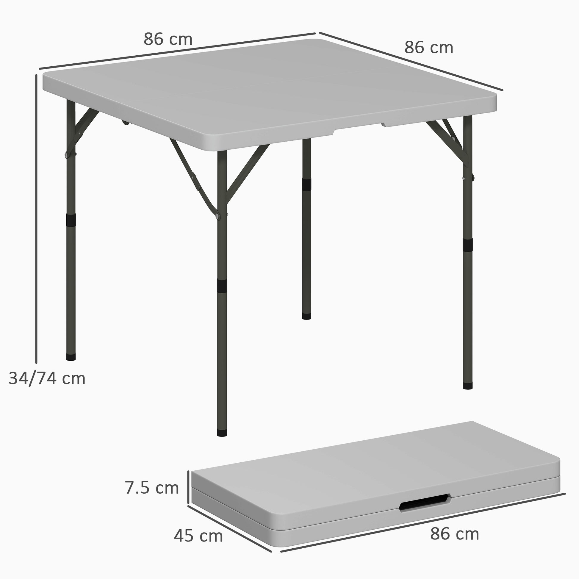 Discover the convenience of the Picnic Table, a versatile plastic garden table that's a breeze to transport and store. Crafted with a robust HDPE top and a metal frame, this portable table offers stability in two adjustable heights. Great for any garden gathering or camping trip, it effortlessly transforms into a compact folding picnic table, enhancing your outdoor adventures.Specifications