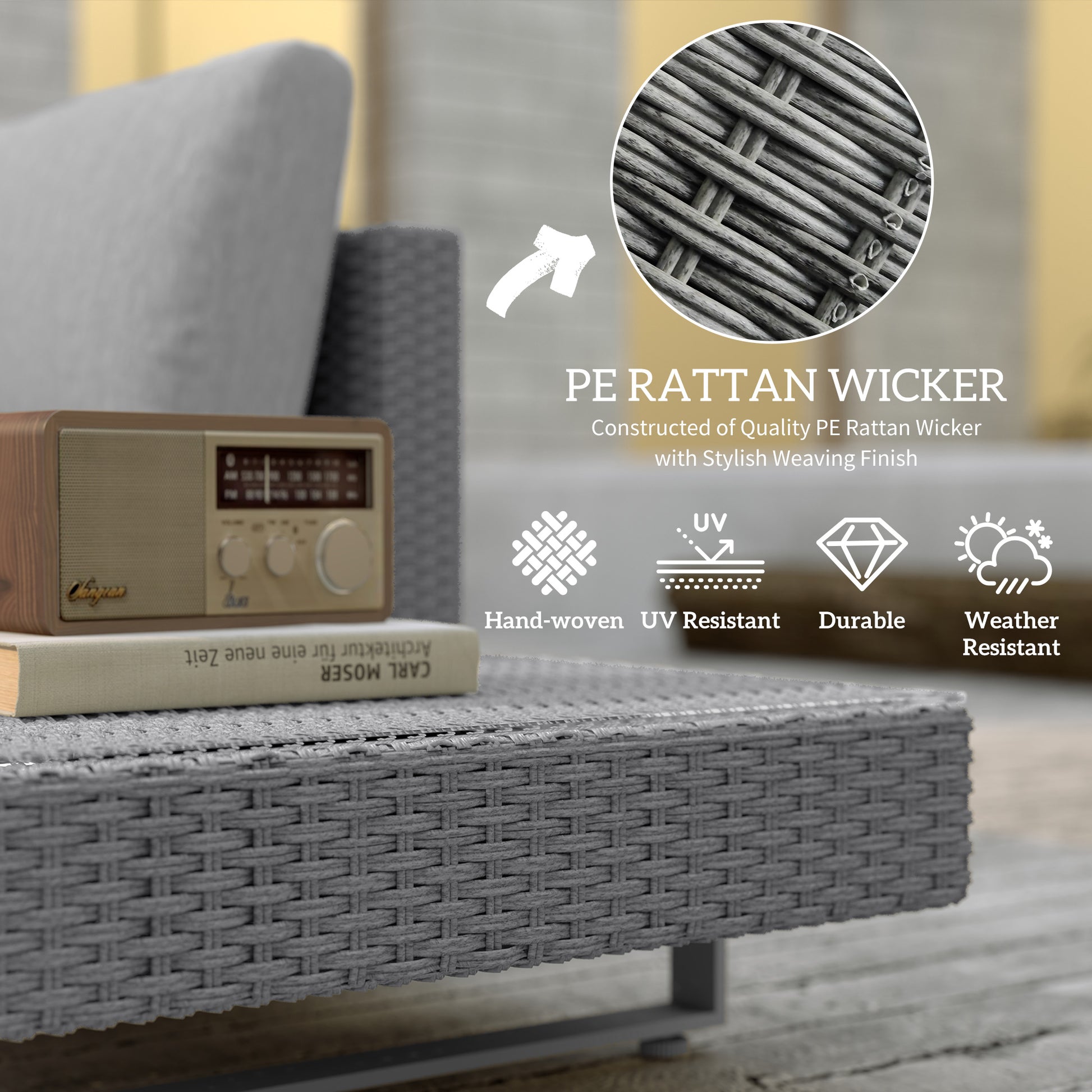 For extremely stylish and comfortable garden set, look to this from Outsunny. Comes with a two-seater sofa, three-seater sofa and matching table-freestanding pieces can be arranged differently if you wish. Wrapped in PE rattan, with a steel frame for core support, each piece of the outdoor furniture set is solid. Thick padded cushions on the seats and backs ensure you'll be relaxing comfortably for hours on end. Finished with a small end table for additional holding room.Specifications