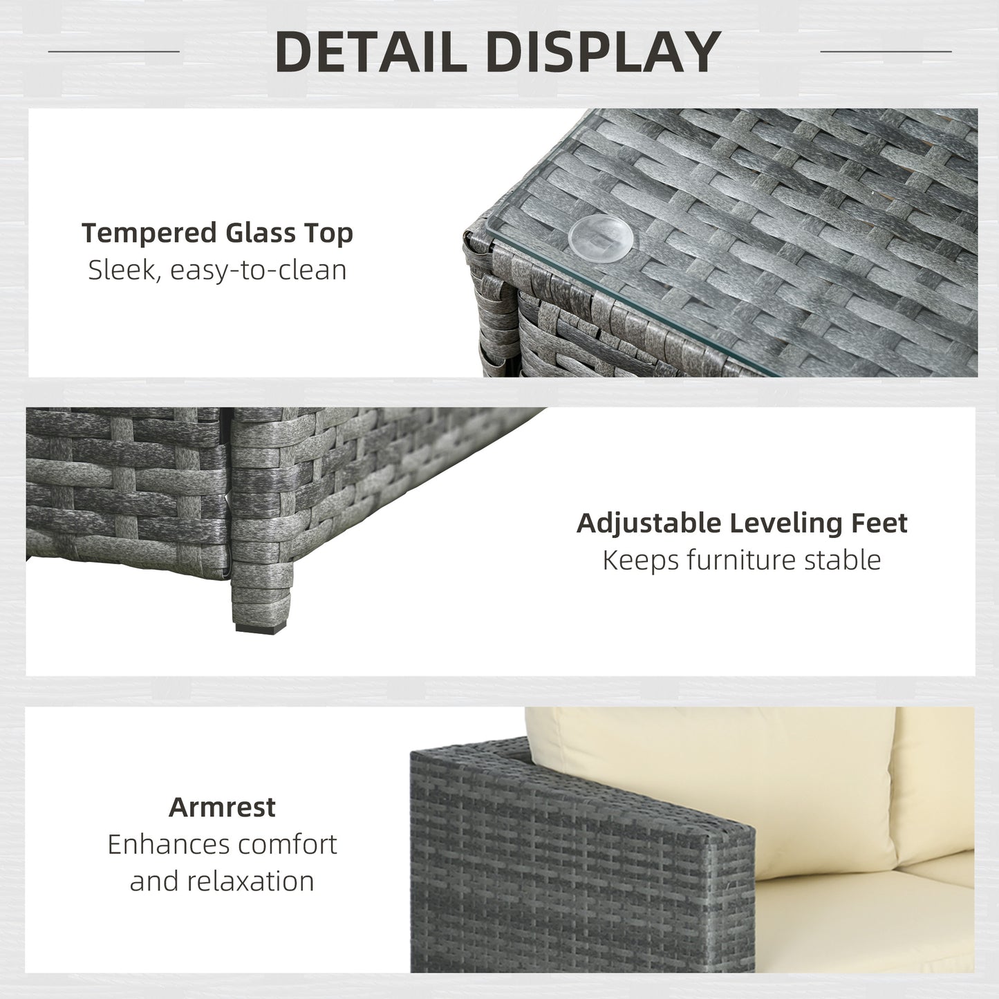 3Pcs Rattan Corner Sofa Set Coffee Table Garden Furniture w/ Cushion - Mixed Grey