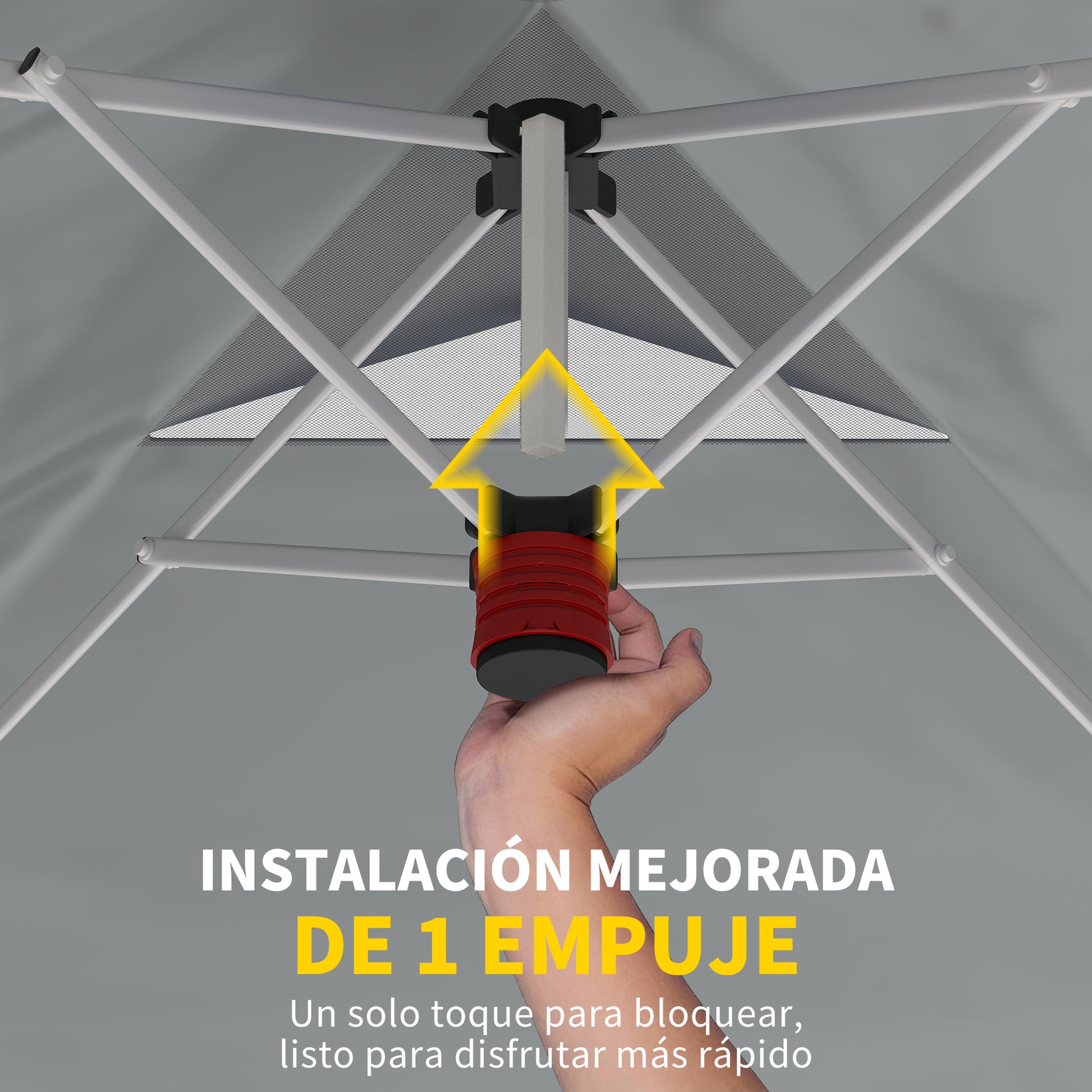 Create a cooler and more welcoming gathering space with this 3 x 3 m pop up gazebo, featuring a 210D Oxford fabric canopy with silver coating for UPF 50+ sun protection. Its powder-coated frame with guy ropes, stakes and sandbags keeps everything steady, while the intuitive pop-up design with a one-push central lock and built-in frame wheels allows you to quickly set the right atmosphere for garden parties, picnics, or relaxed weekend get-togethers.Specifications