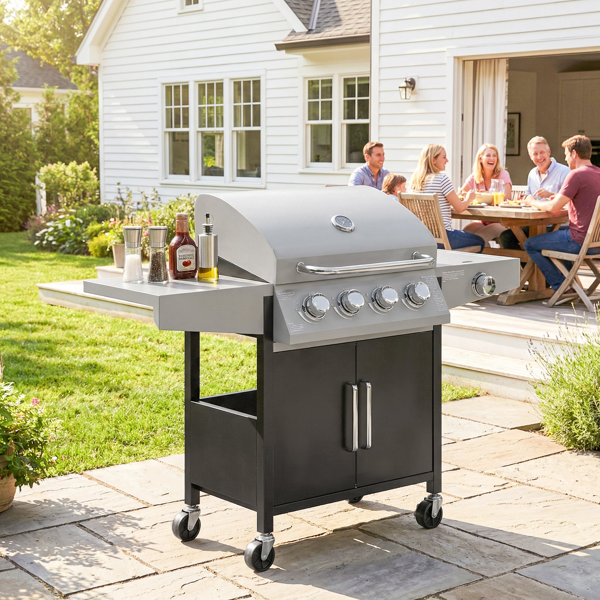 4+1 Burner Gas BBQ Grill with Side Burner, 50000 BTU Gas Grill