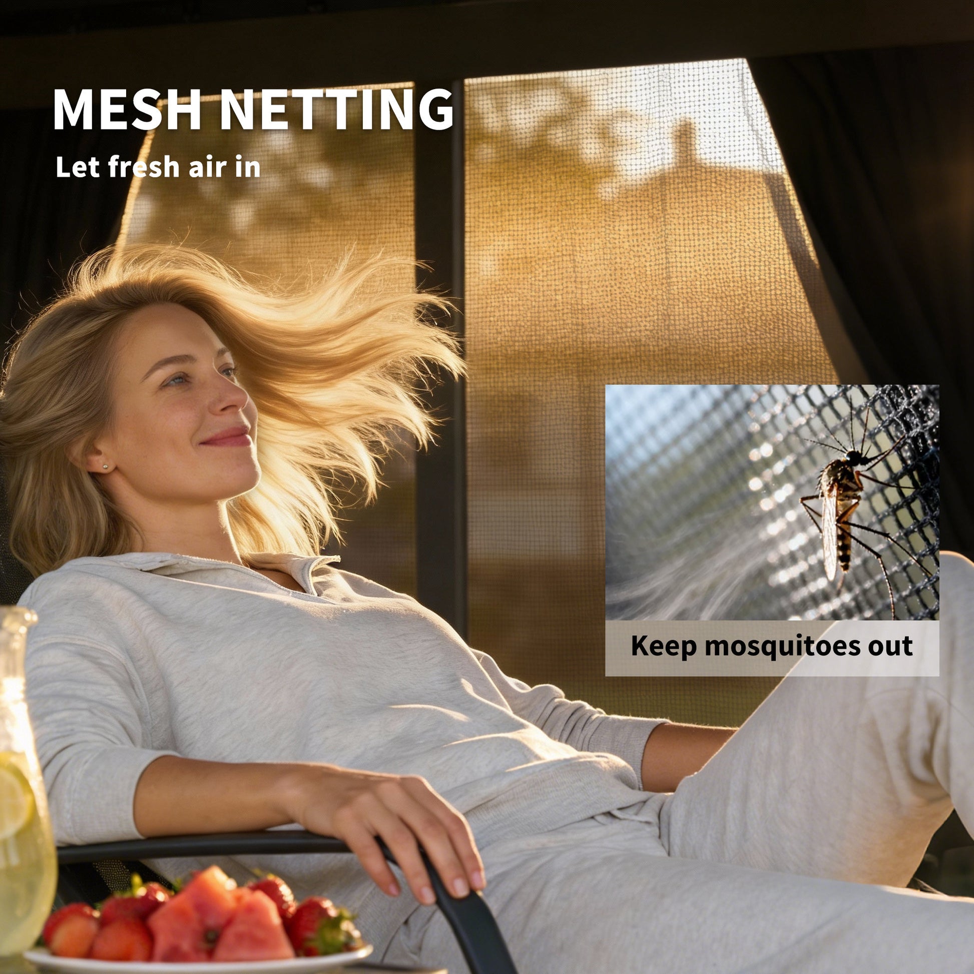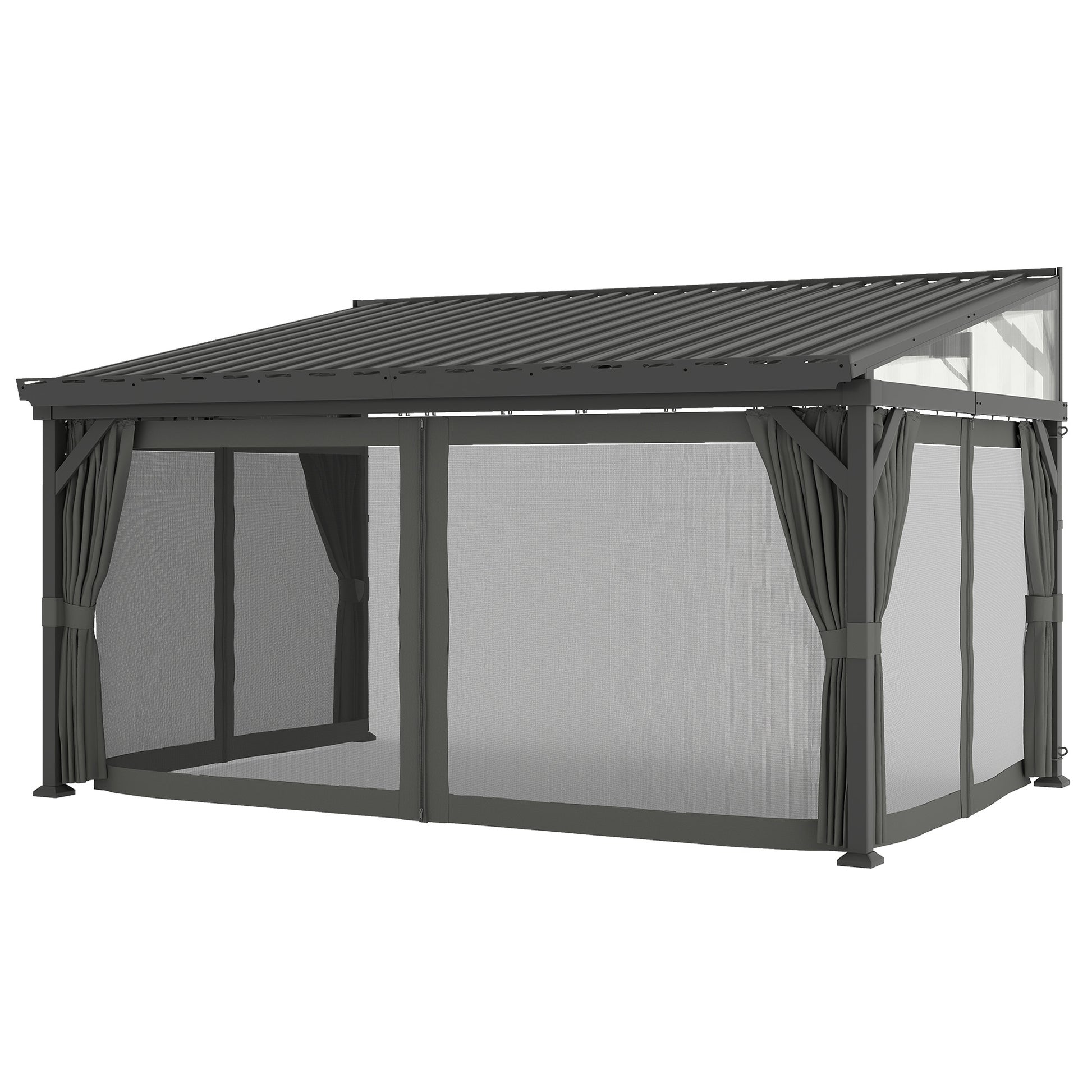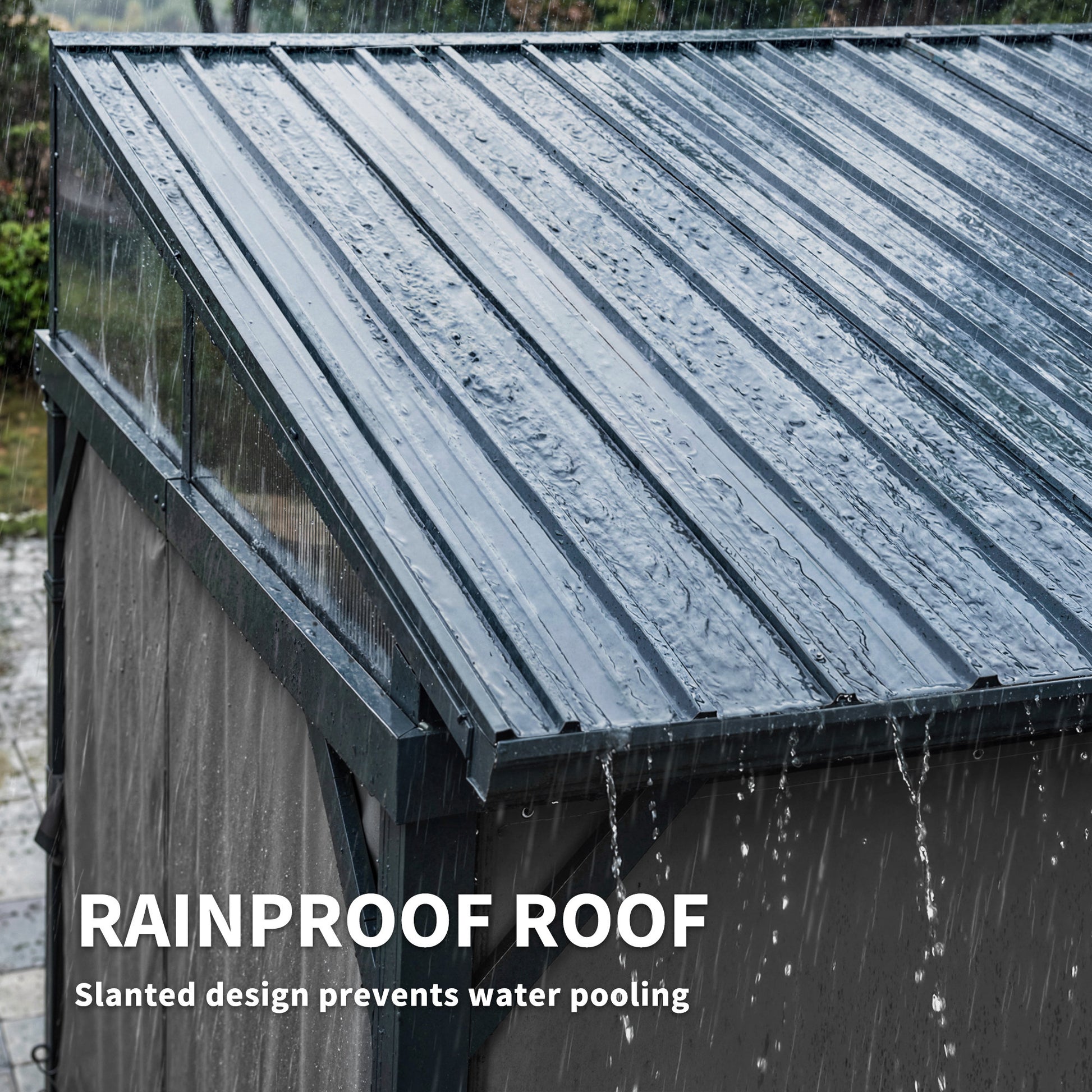 Create a welcoming outdoor haven for family gatherings with this pergola. Its strong steel frame and wind-resistant lean-to design offer reliable stability, while the slanted galvanised steel roof provides year-round comfort and shade. With adjustable curtains and breathable mesh that let air flow while helping keep mosquitoes at bay, the metal gazebo sets the scene for relaxed dinners, playful afternoons and cosy evenings—turning your garden into a natural extension of home.Specifications
