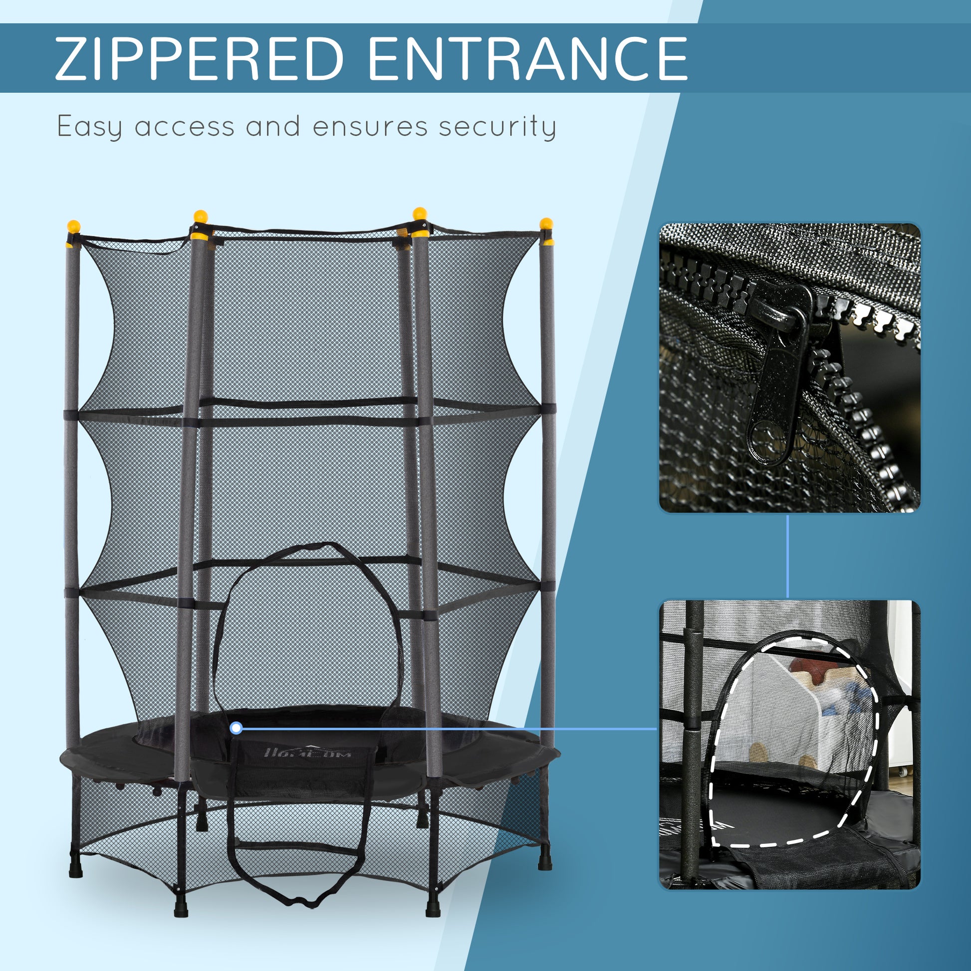 4.6FT/75" Kids Trampoline with Safety Enclosure, Indoor Outdoor - Black