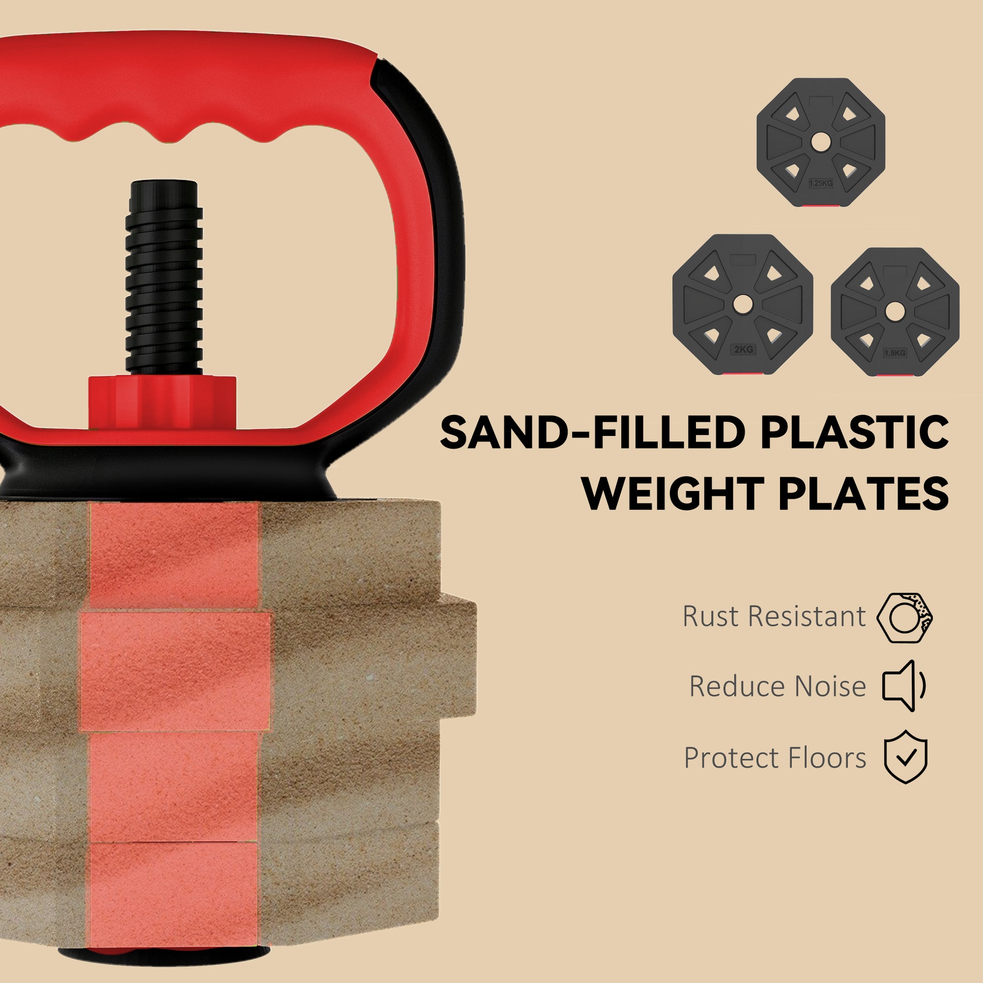 4-in-1 Adjustable Weight Dumbbells Set, 20kg Free Weights Set, Red