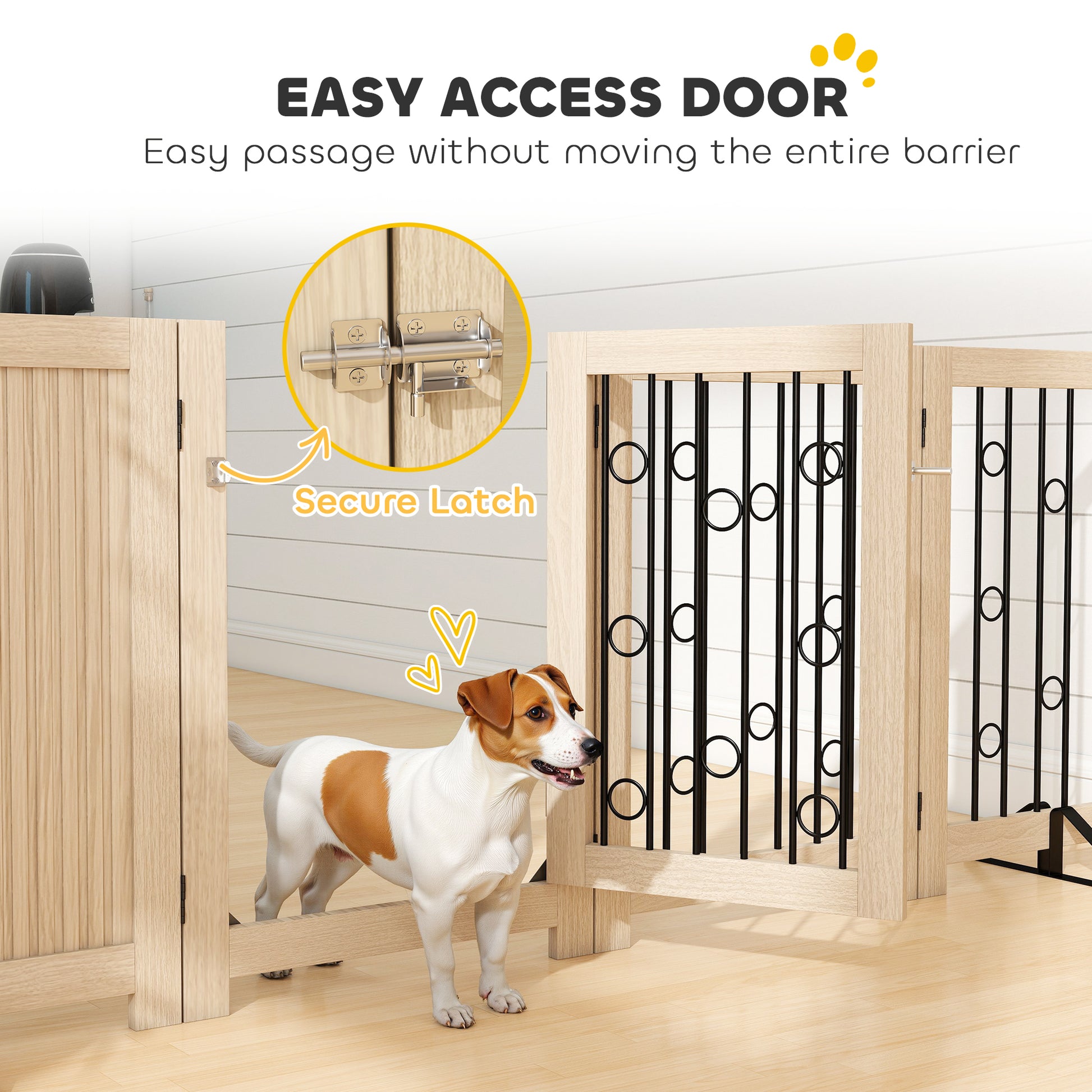 4 Panel Freestanding Pet Gate Foldable with Door for Stairs, Doorway