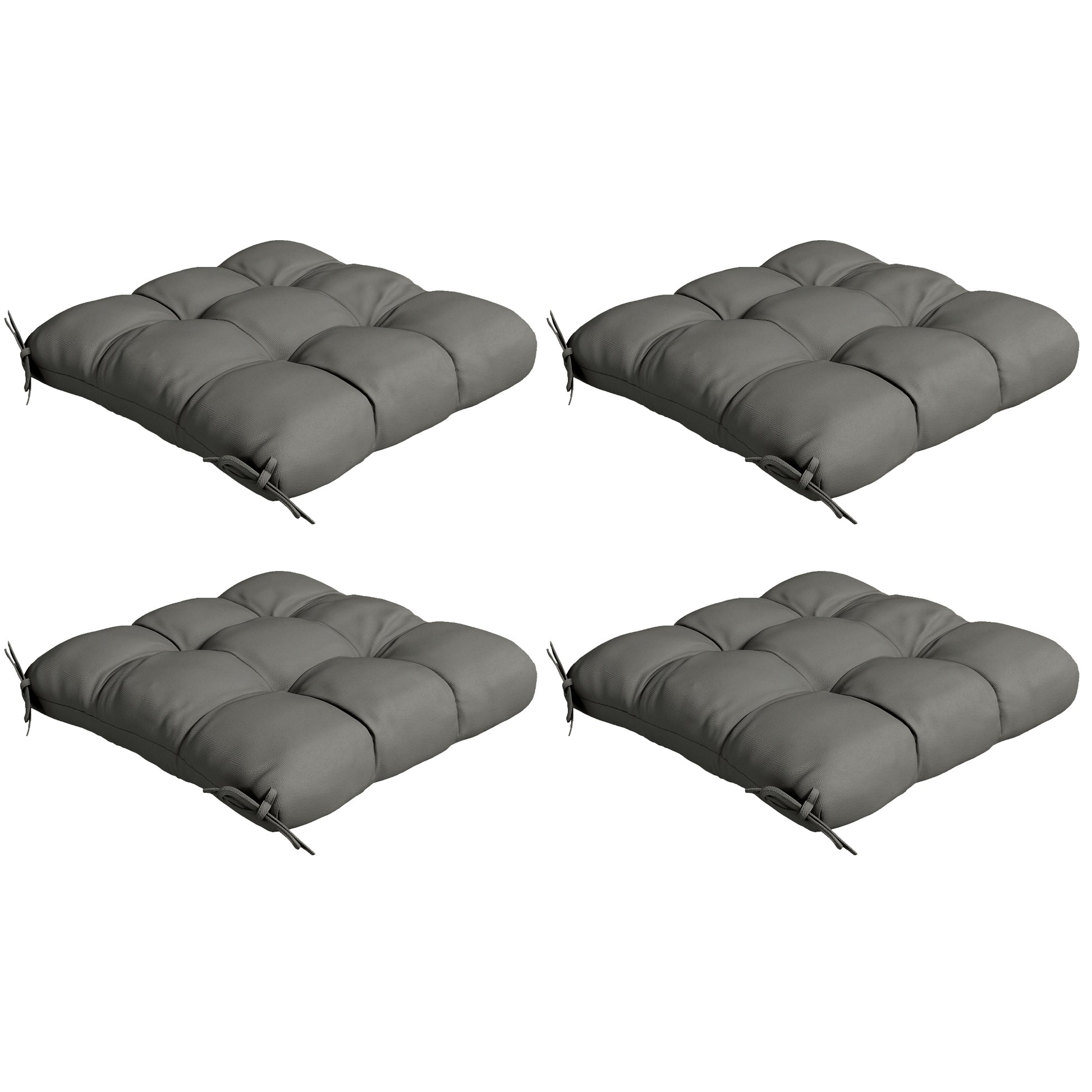 4-Piece Seat Cushion Pillows Replacement, Patio Chair Cushions Set with Ties for Indoor Outdoor, Charcoal Grey
