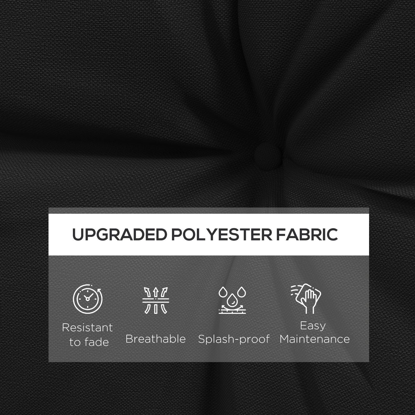 - Polyester covers: Smooth texture, flame retardant, and the patio chair cushions can be wiped clean with cloth.