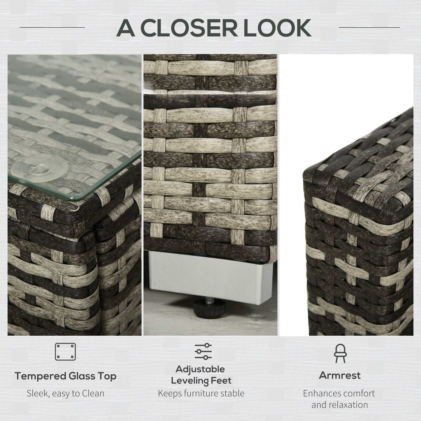 4-Seater Garden Rattan Furniture Set, Outdoor Sectional Conversation PE Rattan Set, with Cushions Pillows and Glass Table, Mixed Grey