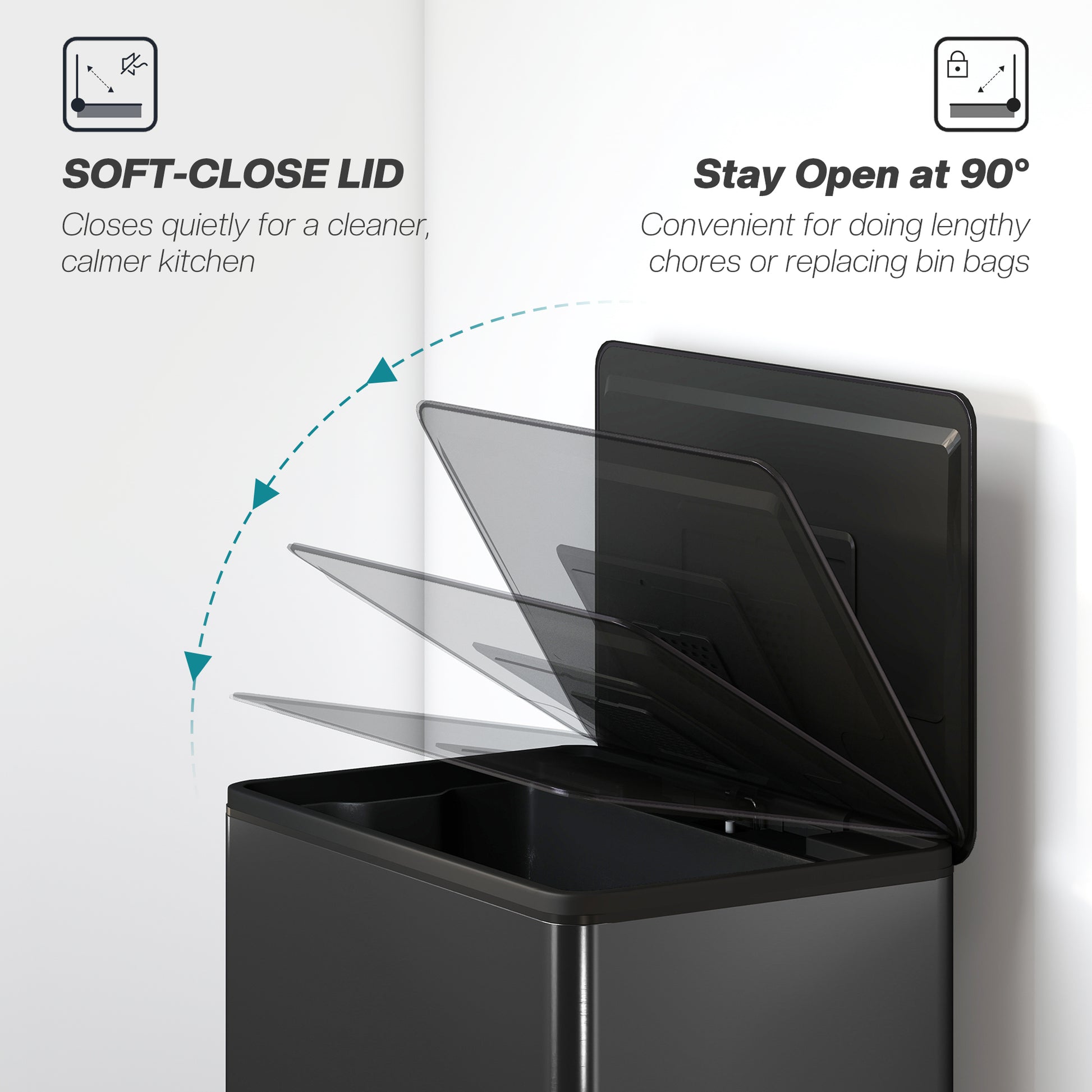 Discover the sleek Kitchen Bin, where style meets functionality. Its modern and fingerprint-resistant design enhances any room, while the generous 45L capacity handles daily waste with ease. Enjoy the convenience of a soft-close, stay-open lid for a smoother, quieter kitchen experience. Excellent for homes looking for both flair and practicality.Specifications