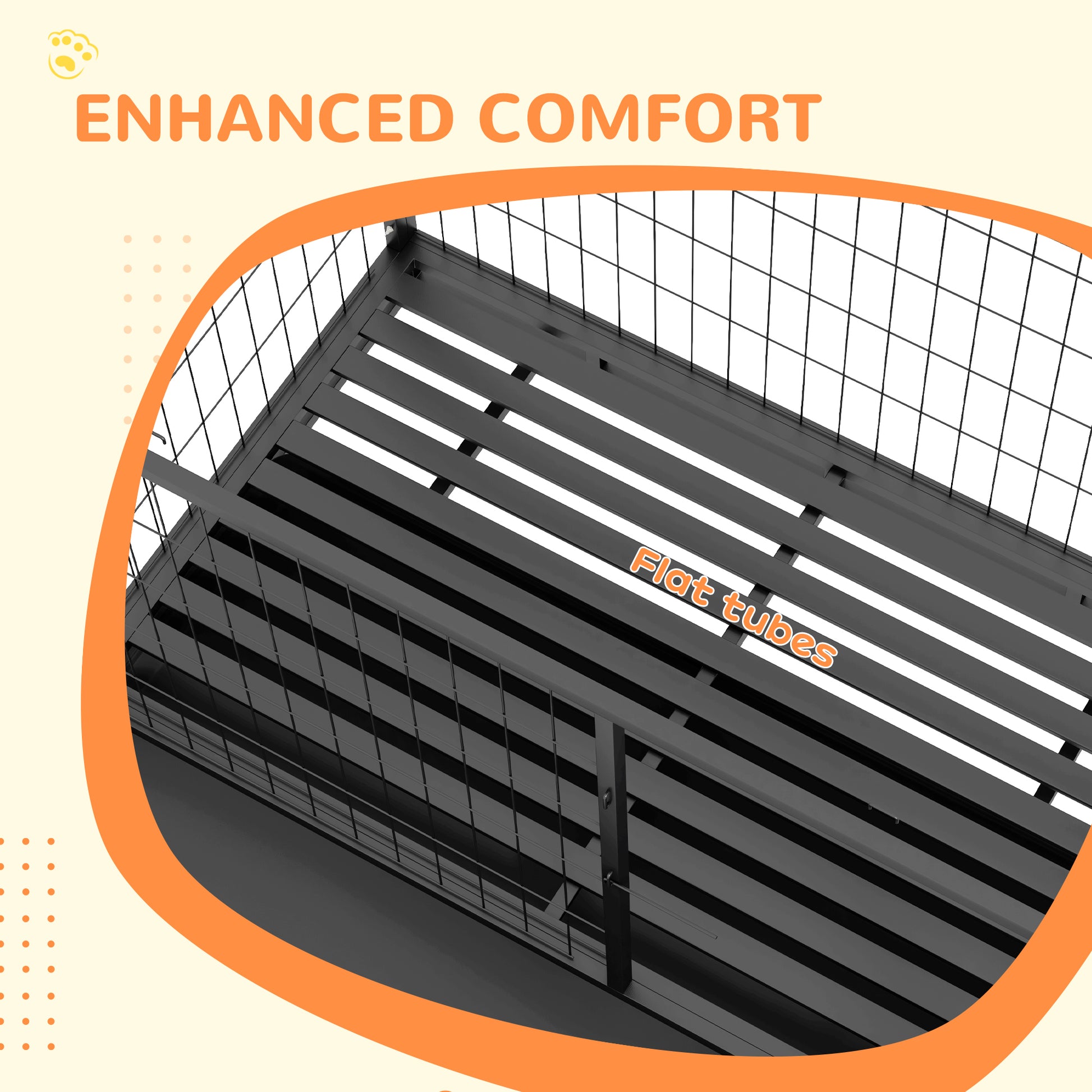 Who let the dogs out? Not you, thanks to this dog crate. A space where comfort meets convenience, its flat tube bottom provides a cosy retreat, whist the included bowl and holder ensure pets never go hungry. The large door provides easy access – the locks keep them securely inside when needed. Plus, there's a smaller door, so they can enjoy a quick snack. Finished with wheels at the bottom, you'll wheel the crate from room to room, so your pets are always by your side.Specifications