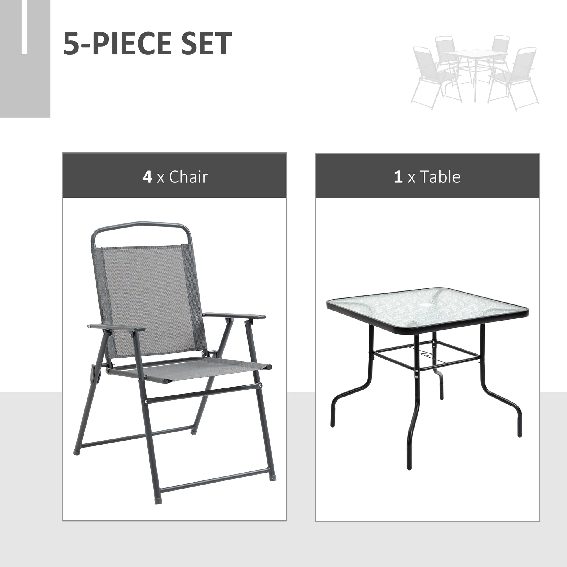 5 Piece Garden Dining Furniture Set w/ 4 Folding Chairs & Parasol Hole