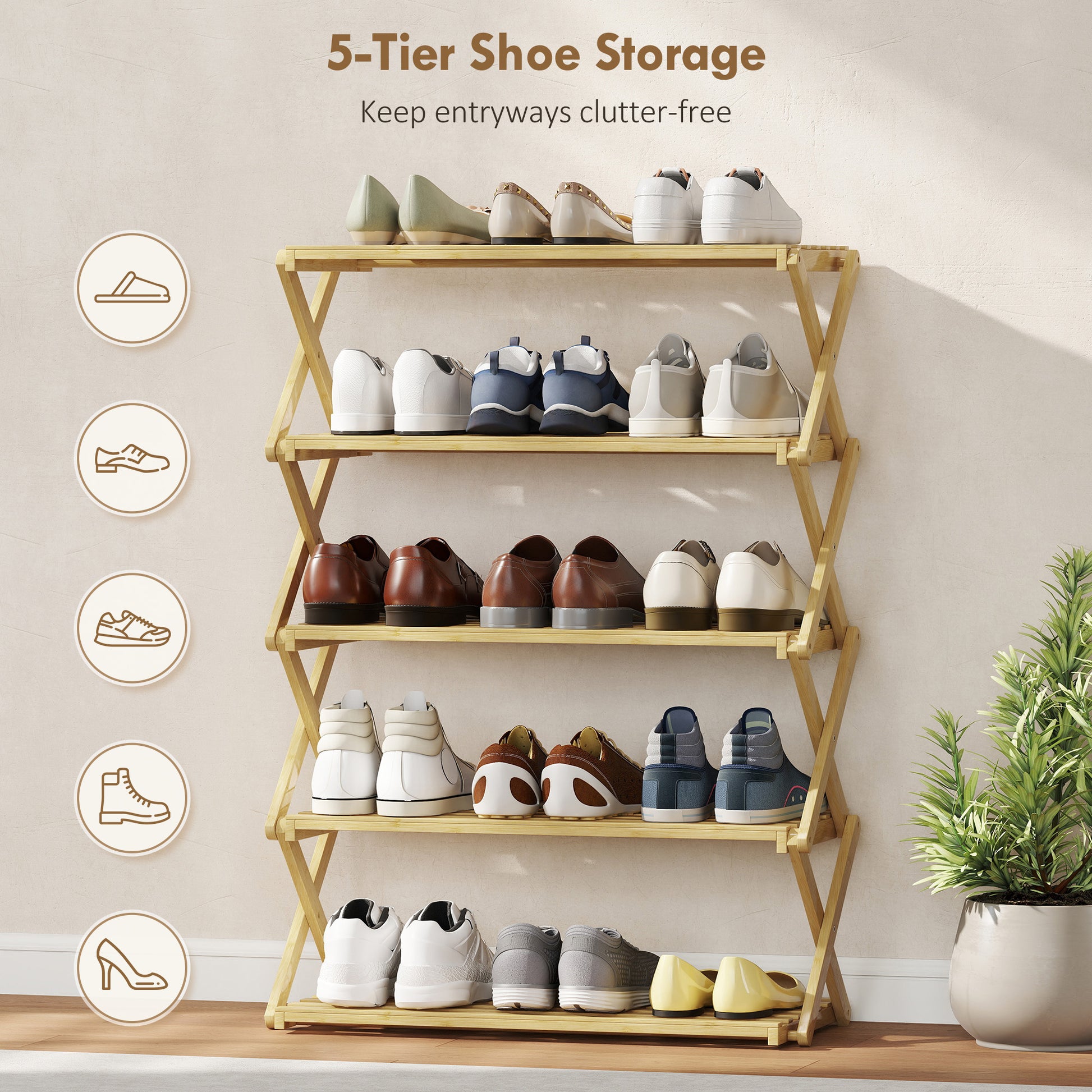 5-Tier Bamboo Shoe Rack, Folding Shoe Shelf, Holds up to 15 Pairs