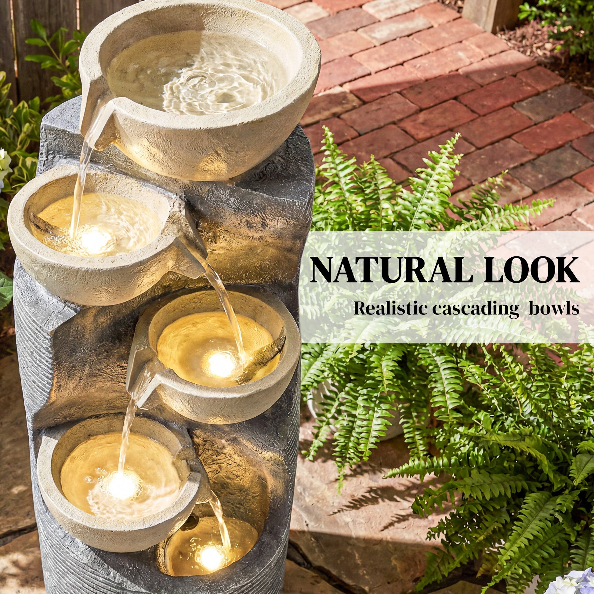 5 Tier Garden Water Feature, Outdoor Water Fountain with LED Lights
