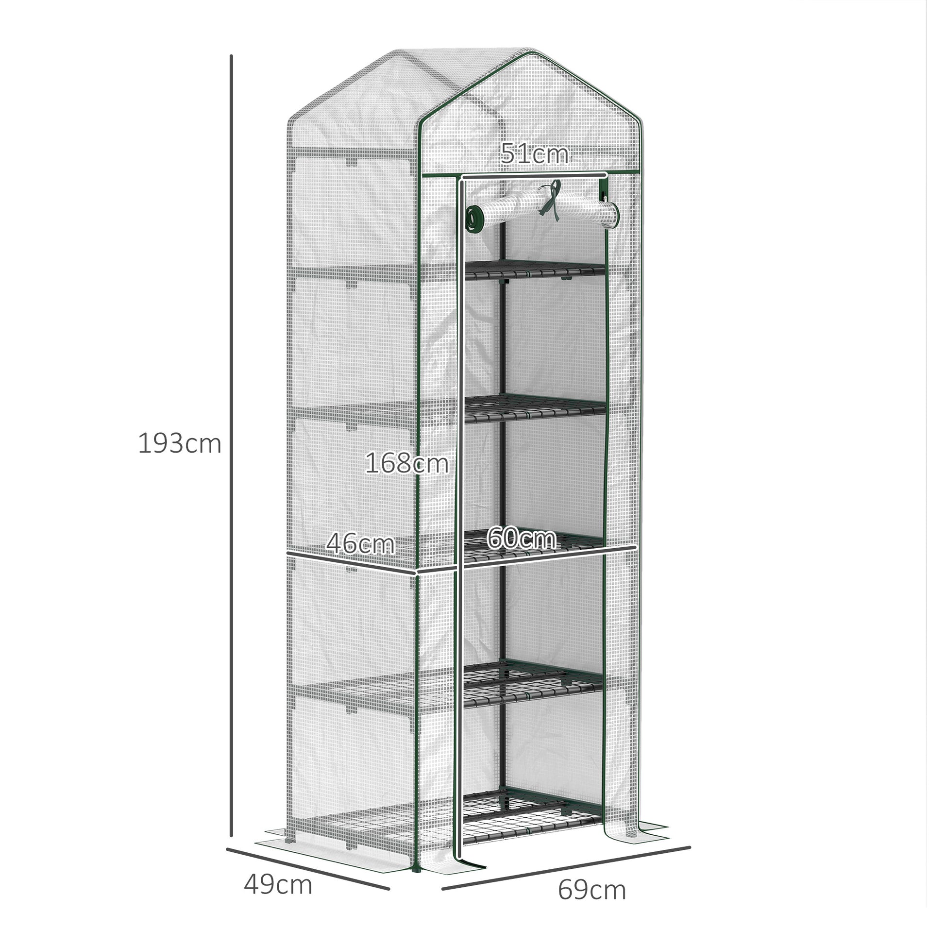 5 Tier Mini Greenhouse Grow House w/ Roll Up Door, White/Green