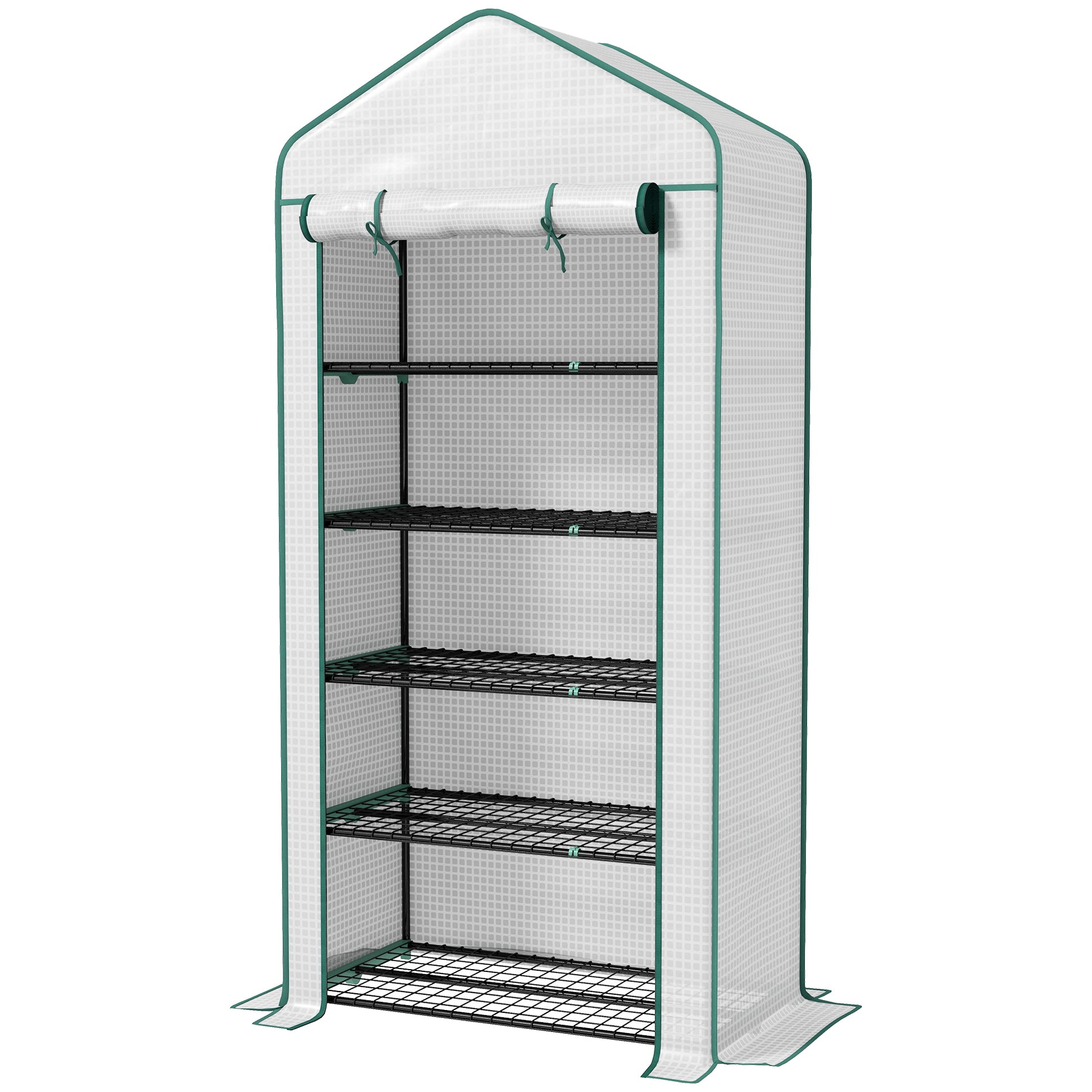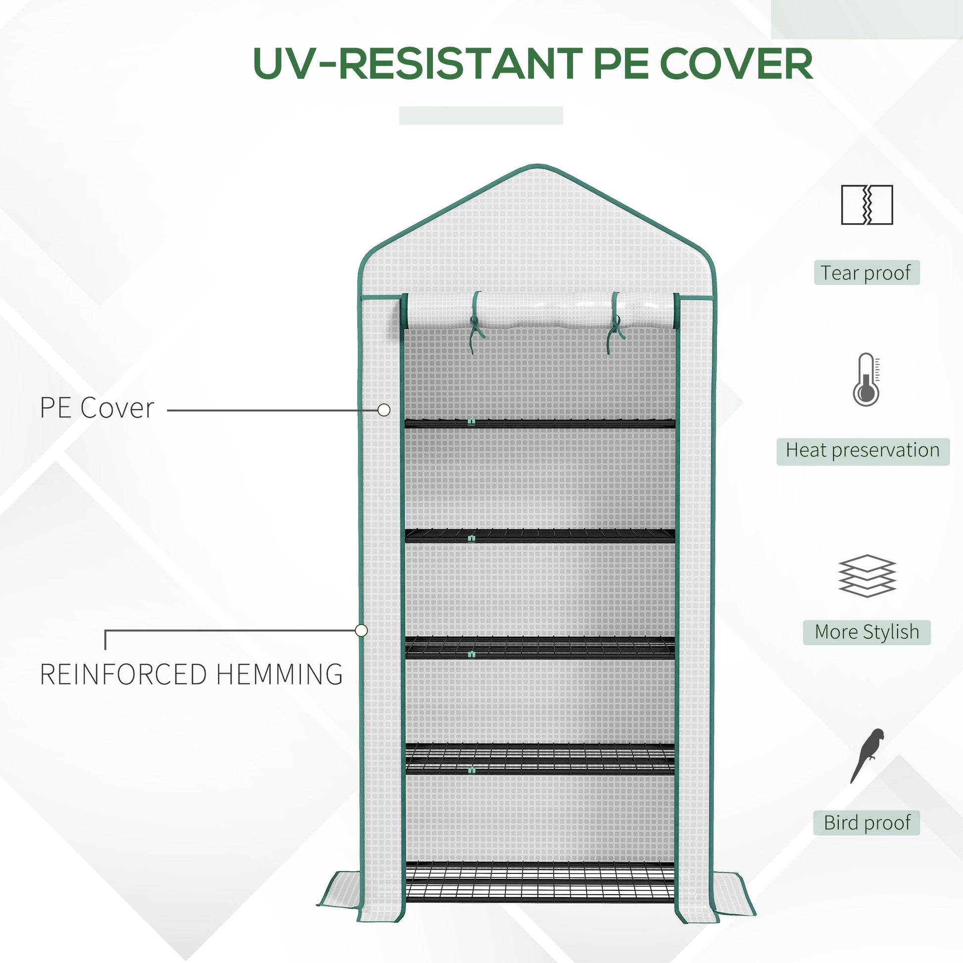 5 Tier Widened Mini Greenhouse w/ Reinforced PE Cover, Portable Green House w/ Roll-up Door & Wire Shelves, 193H x 90W x 49Dcm, White