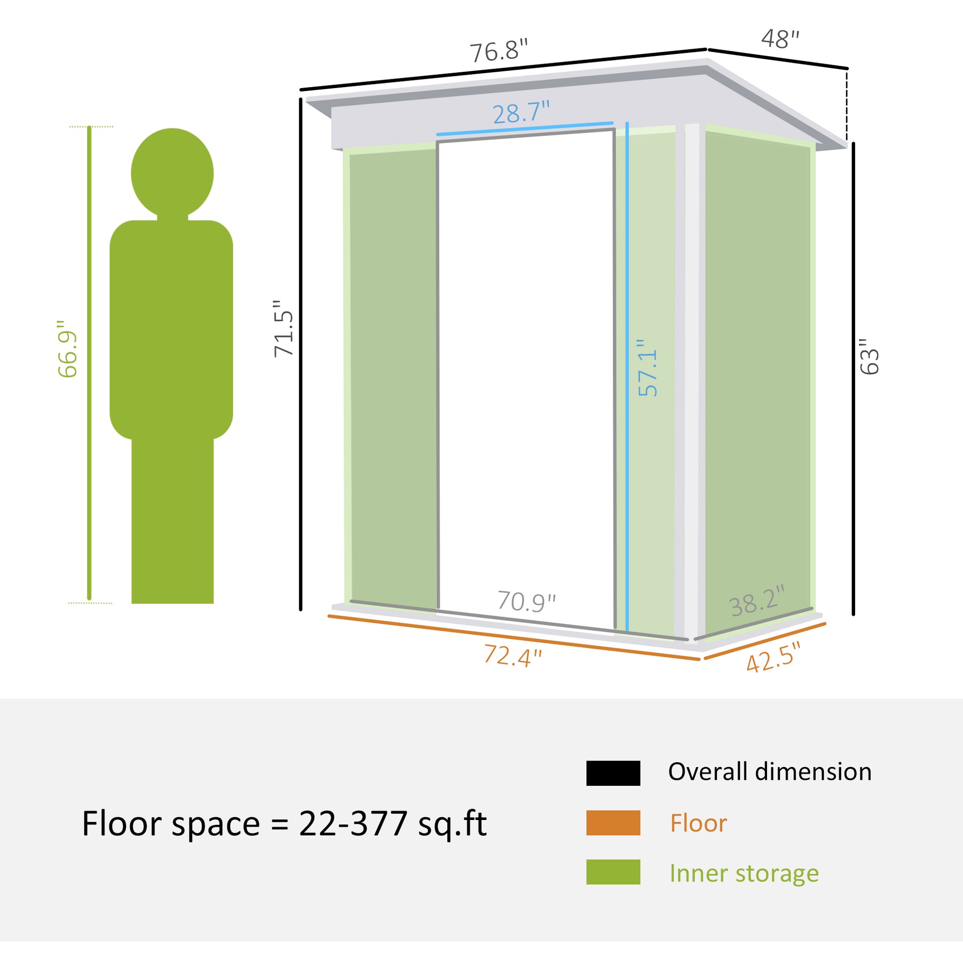 - Galvanised steel structure: Metal storage shed is strong and stable, suitable for outdoor use.