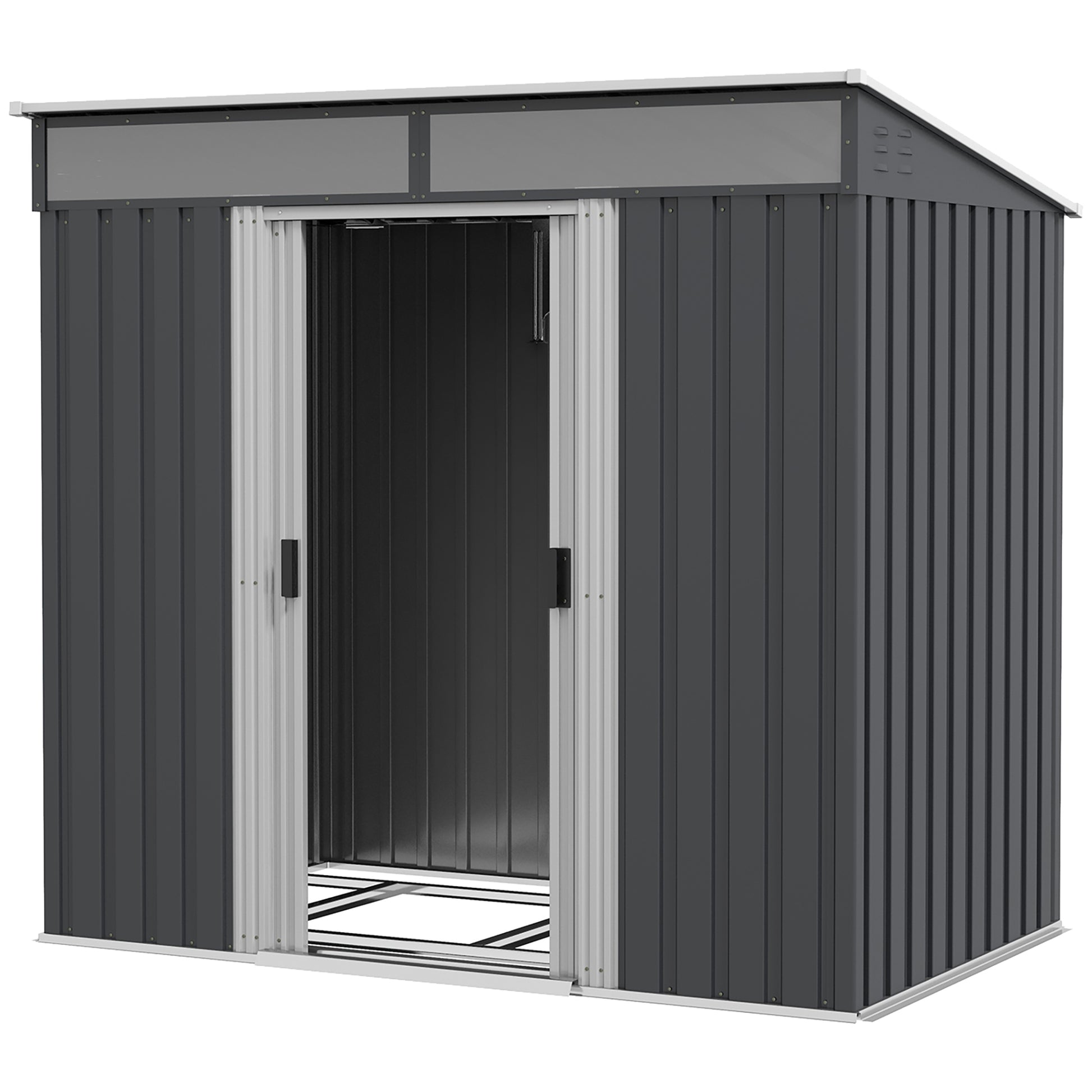 6.5 x 4FT Galvanised Metal Shed with Foundation, Lockable Tool Garden Shed with Double Sliding Doors and 2 Vents, Grey