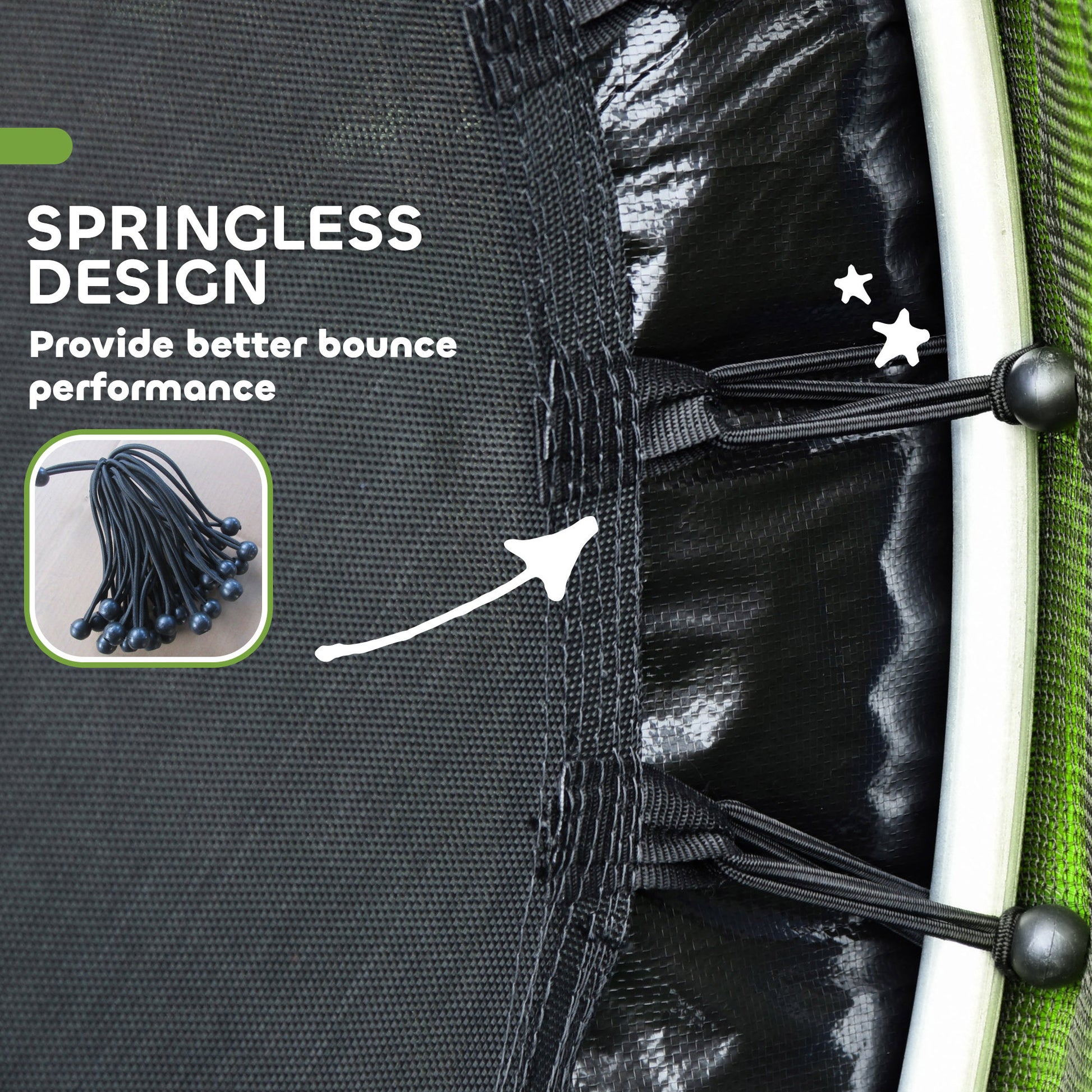 This trampoline provides endless fun – a great way to keep kids active. Made from steel, it's strong, stable and built to last, giving children daily entertainment. They'll bounce and play safely, thanks to the enclosed net and padded poles, which stop them from falling off, whilst its bungee design replaces traditional springs, which won't pierce through and cause injuries. It's a spacious play area - suitable for those who have lots of energy to burn.Specifications