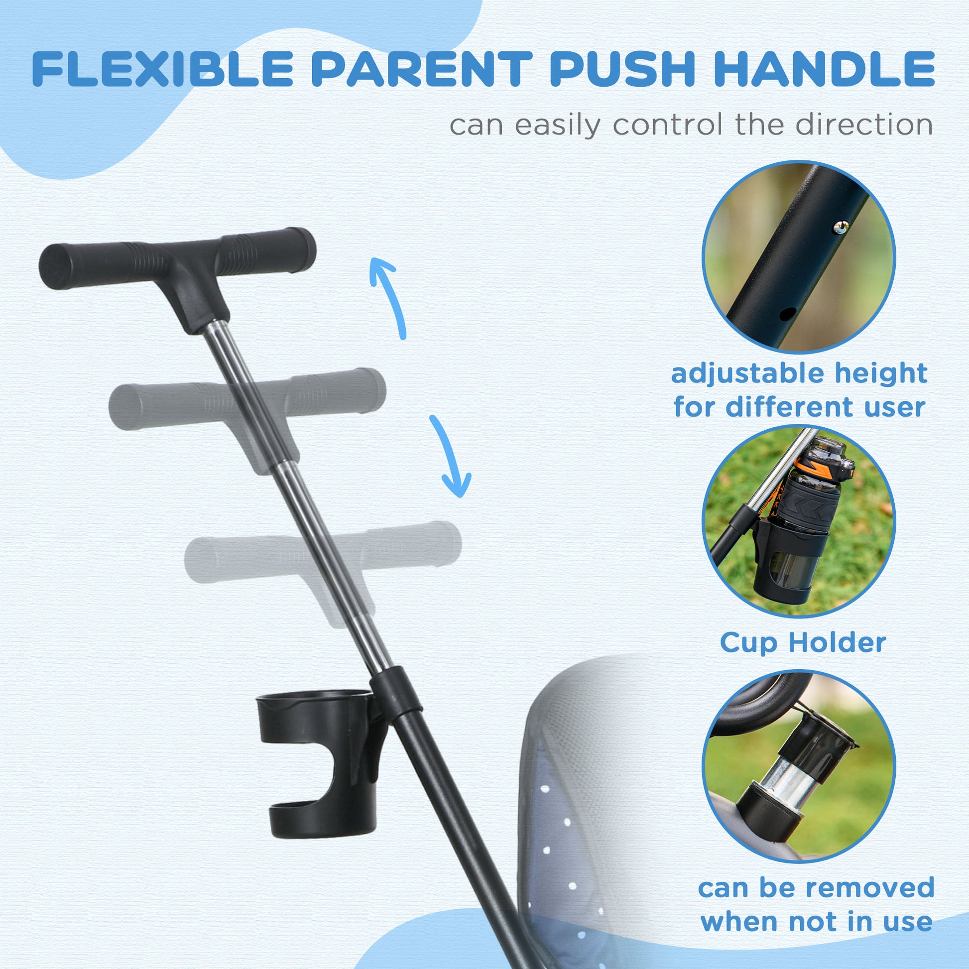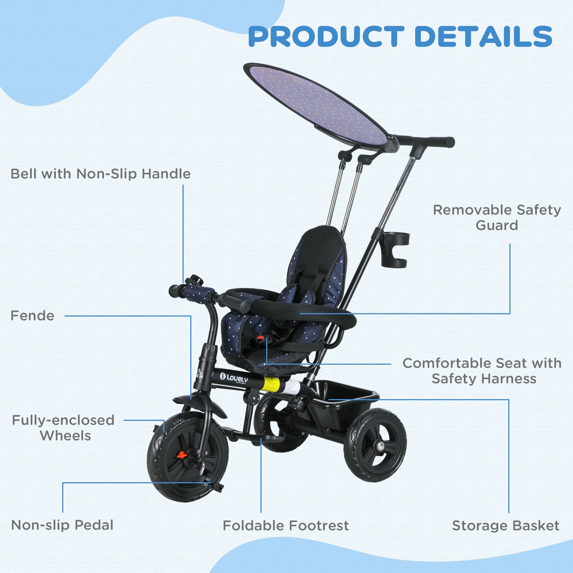 6 in 1 Kids Tricycle w/ Removable Handle for 1.5+ year, Dark Blue
