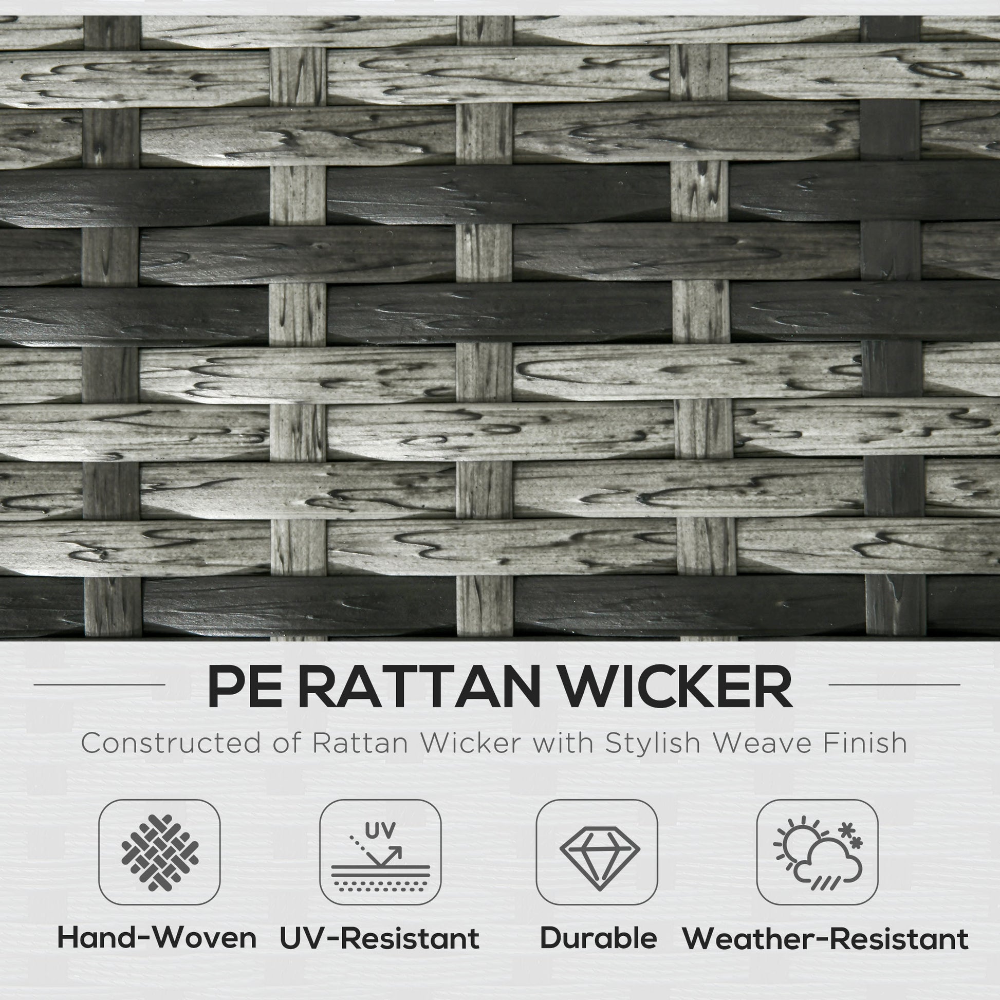 - Material: PE Rattan, Steel, Polyester