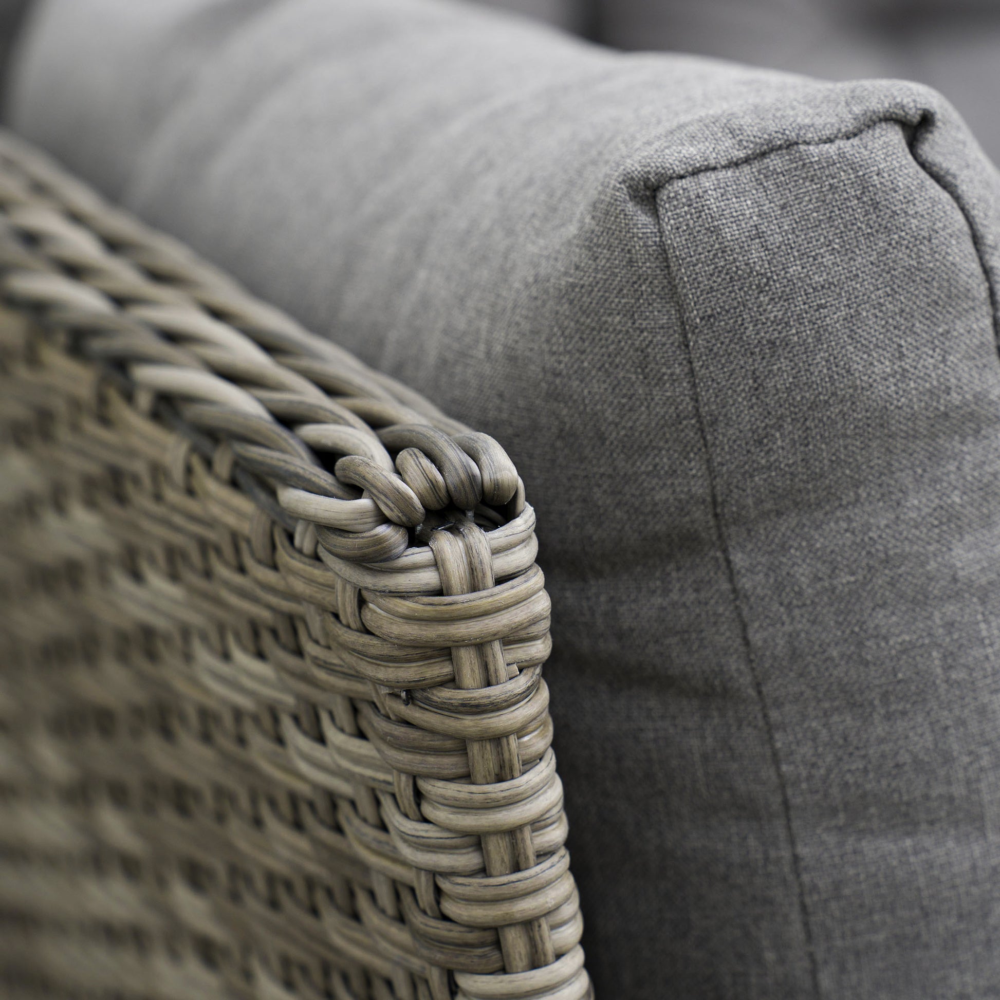Relax together in comfort and style in this rattan corner sofa set., Six pieces: corner chair, right-handed loveseat, left-handed loveseat, long footstool, square footstool and a liftable coffee table - arrange in a way you want. Metal frame for a strong core, wrapped in plastic rattan for support, durability and style. The table can be raised or lowered-dine at a level you wantcomes with a wood-effect top for extra beauty.