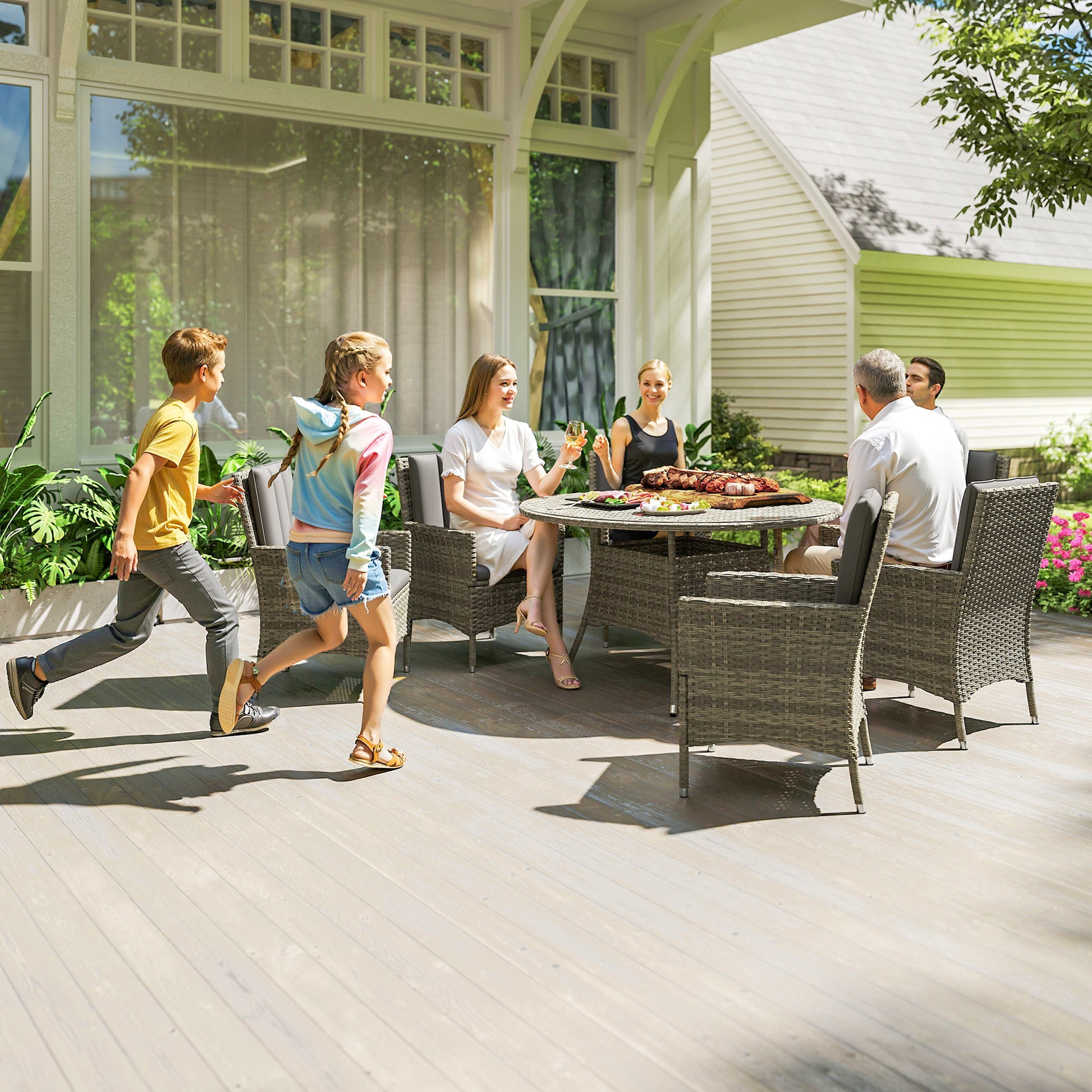 6 Seater Rattan Outdoor Dining Set with Cushions, Light Grey
