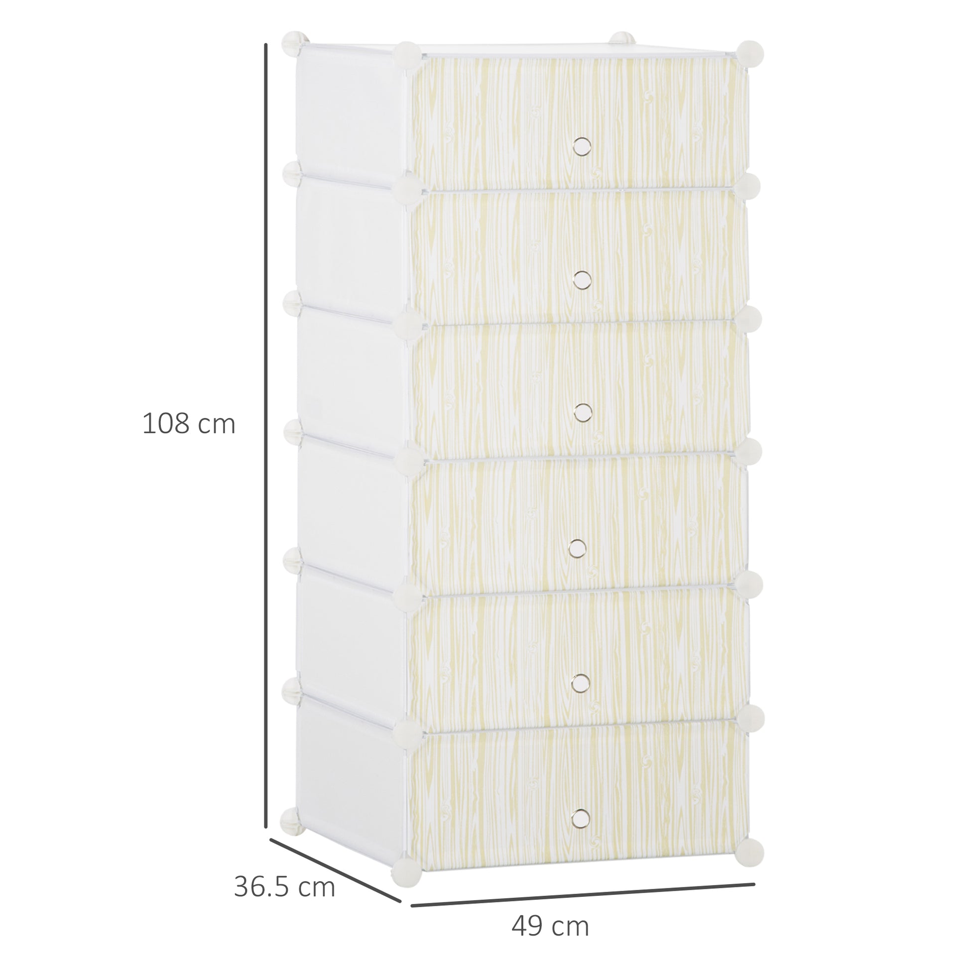 6 Tier Shoe Rack Plastic Storage Cabinet Modular Shoe Tower White