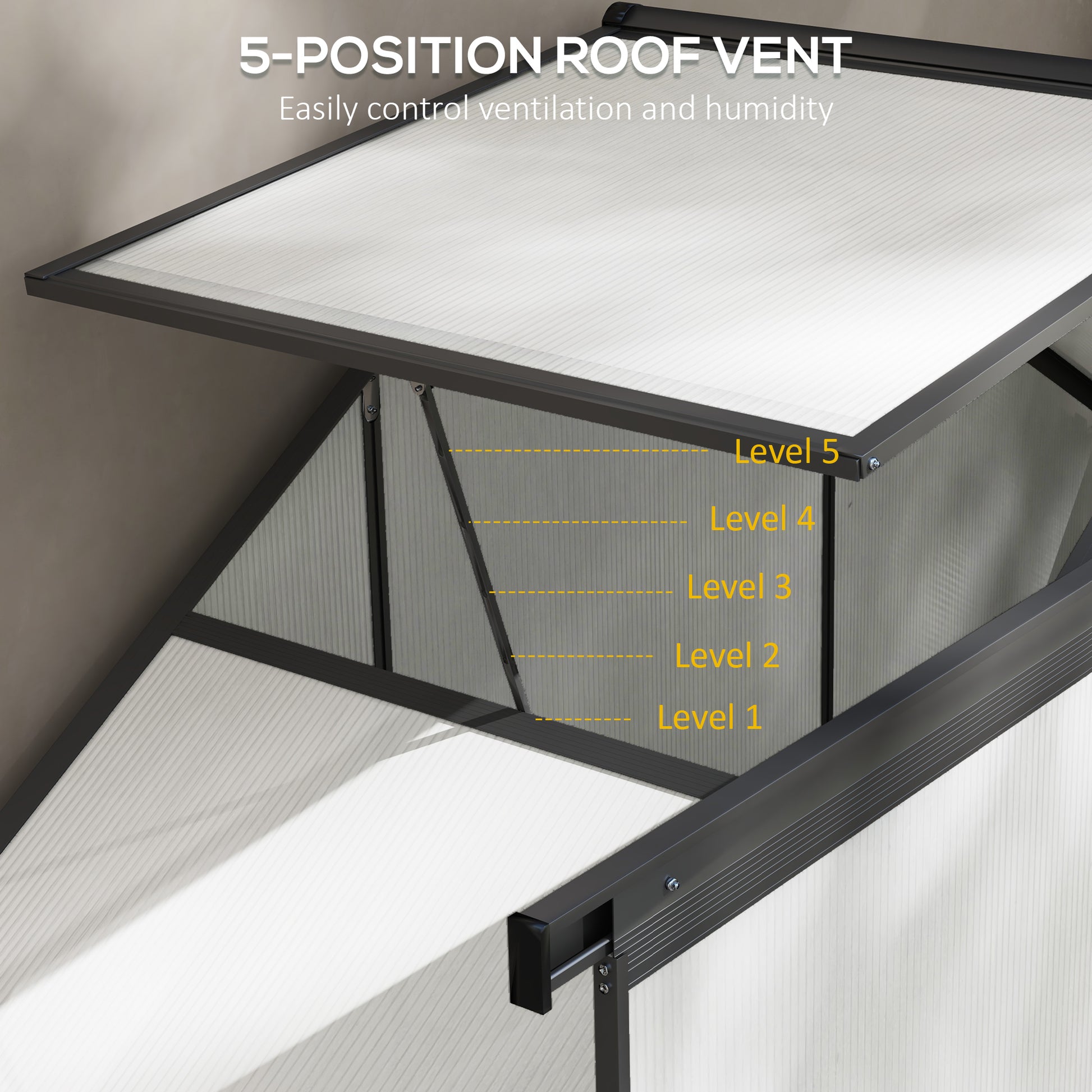 - Sliding door and push-up window: Easy to open/close the entrance and access inside this polycarbonate greenhouse. Window to bring fresh air inside when needed.