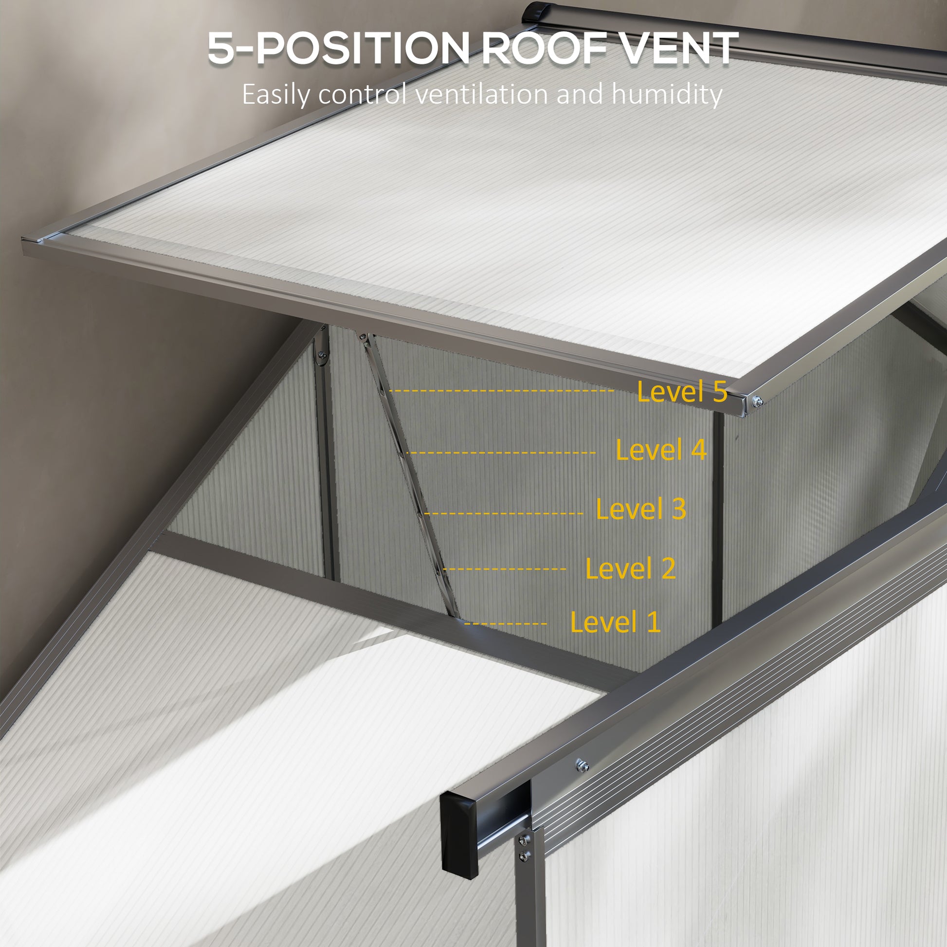 - Sliding door and push-up window: Easy to open/close the entrance and access inside this polycarbonate greenhouse. Window to bring fresh air inside when needed.