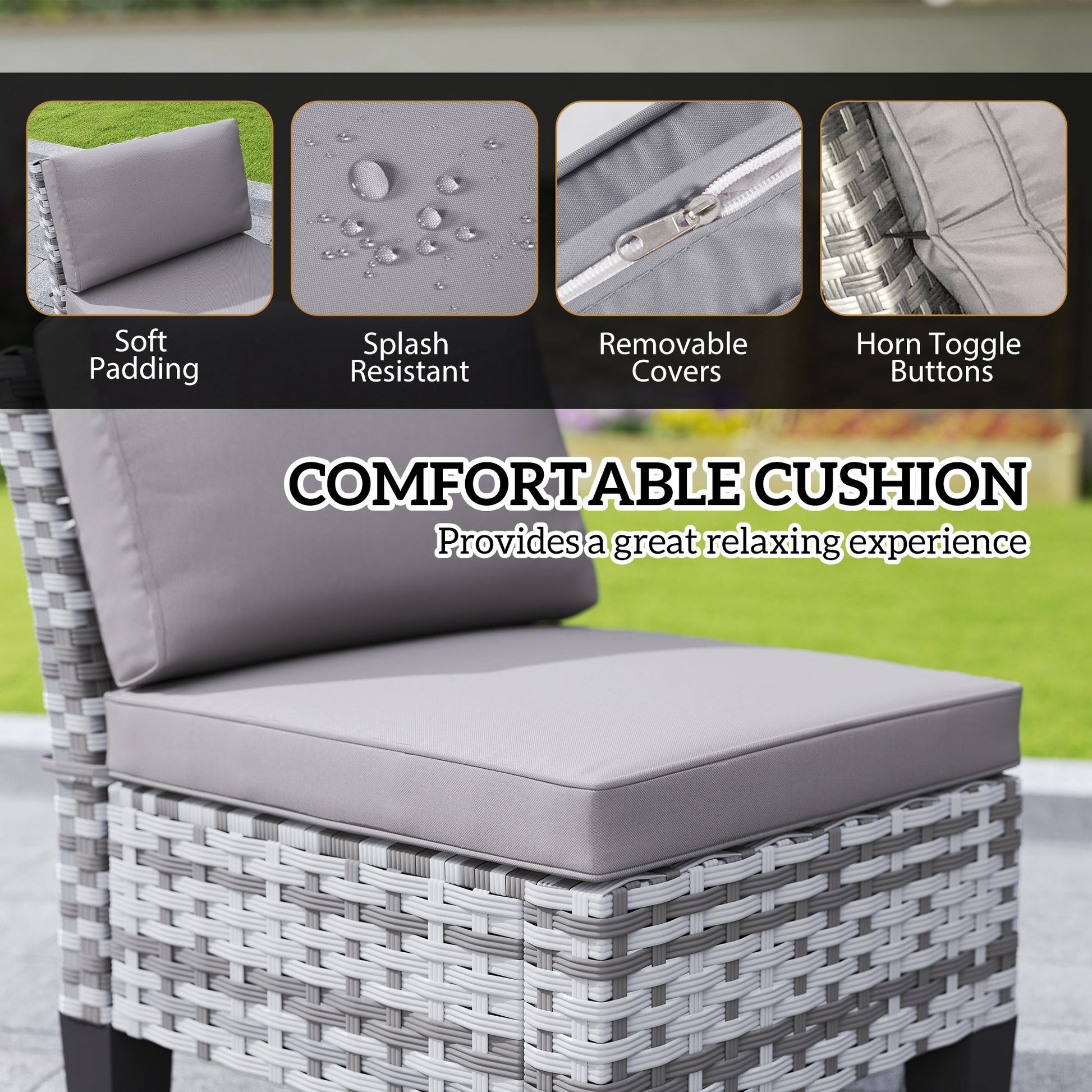 7 PCS Rattan Garden Dining Set with Cushions, Umbrella Hole, Grey