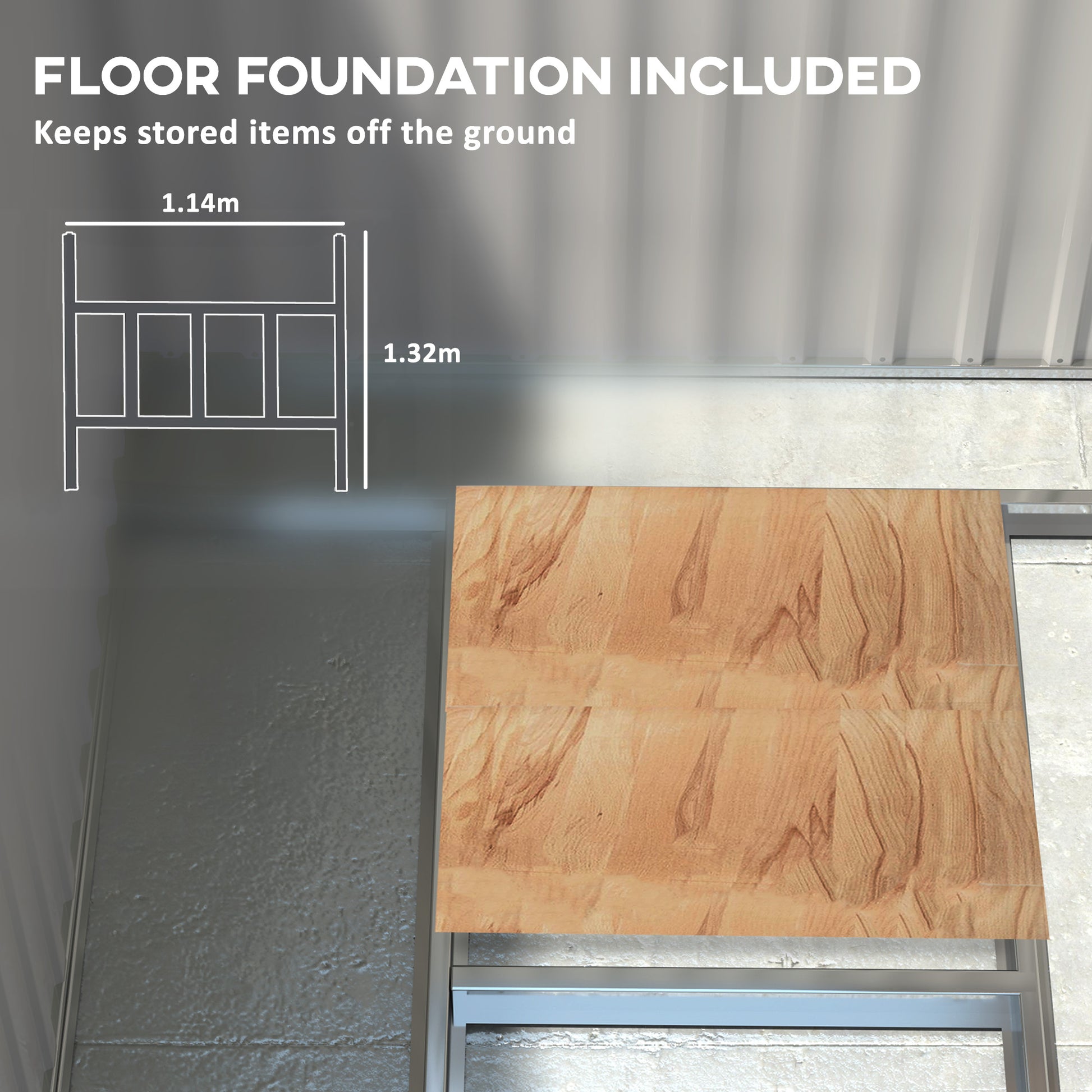 - Floor foundation included, so that your storage items won't touch the floor directly
