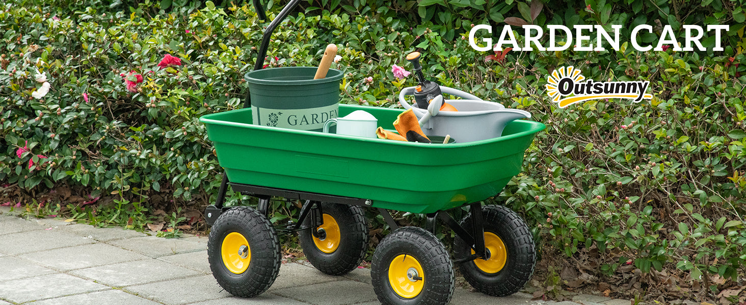 - HIGH QUALITY: The garden cart with powder coated steel frame and PP tub is designed for outdoor use, weather resistant and durable. The 4 pneumatic tires with steel rims provide a smooth and stable rolling on the grass, soil, pebble, etc.