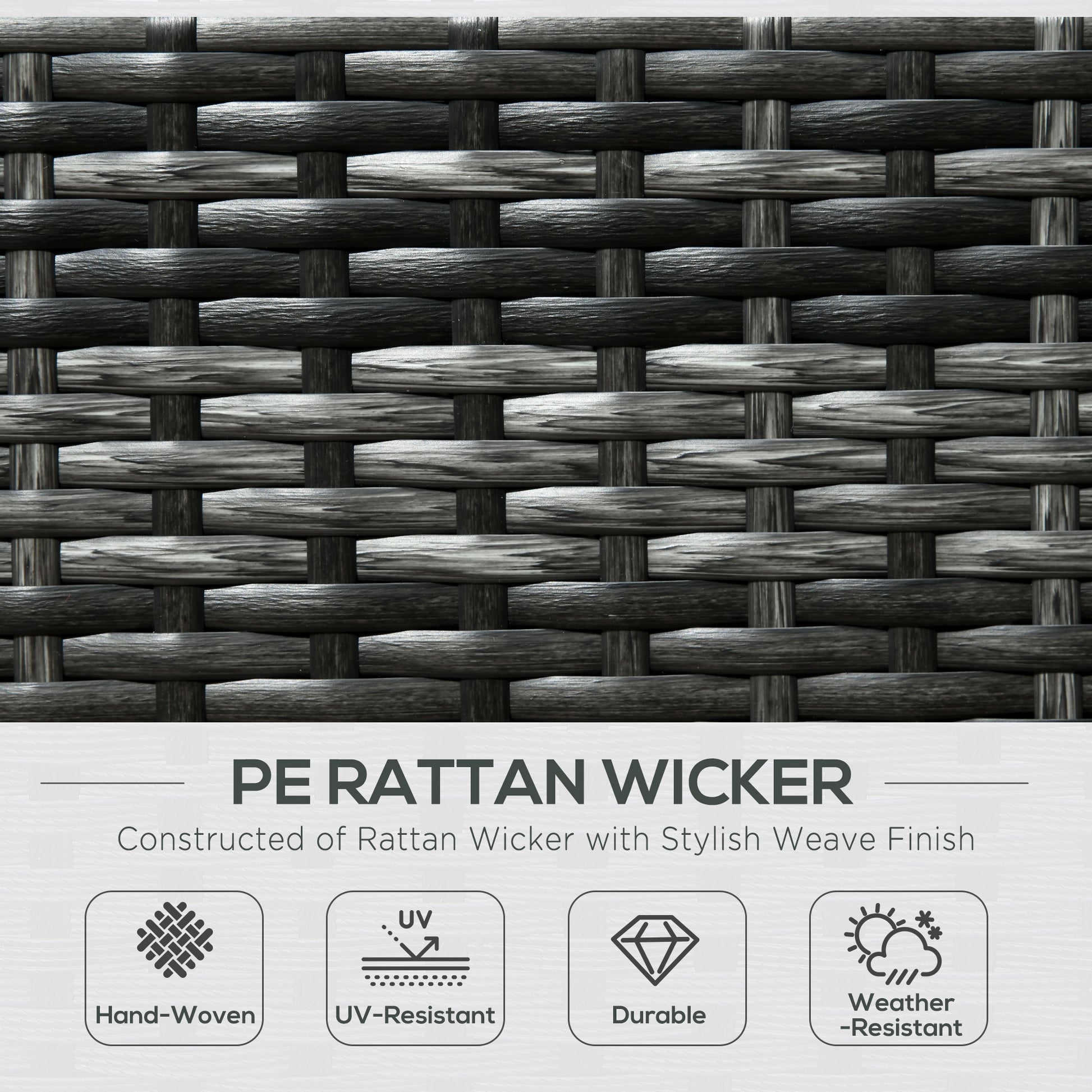 - Steel frame for a steady structure, with hand-woven rattan on top. Tough and durable, resistant to everyday wear and UV damage