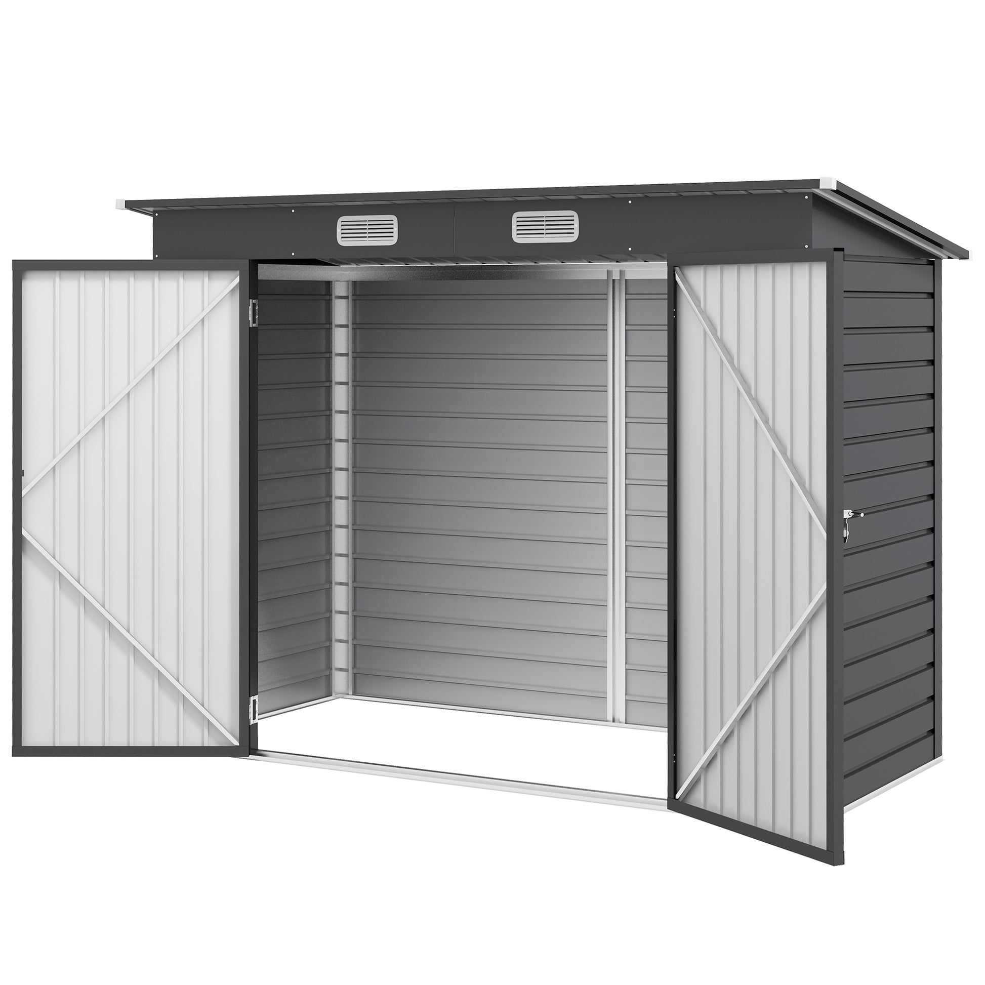 8 x 4FT Galvanised Garden Storage Shed, Metal Outdoor Shed with Double Doors and 2 Vents, Grey