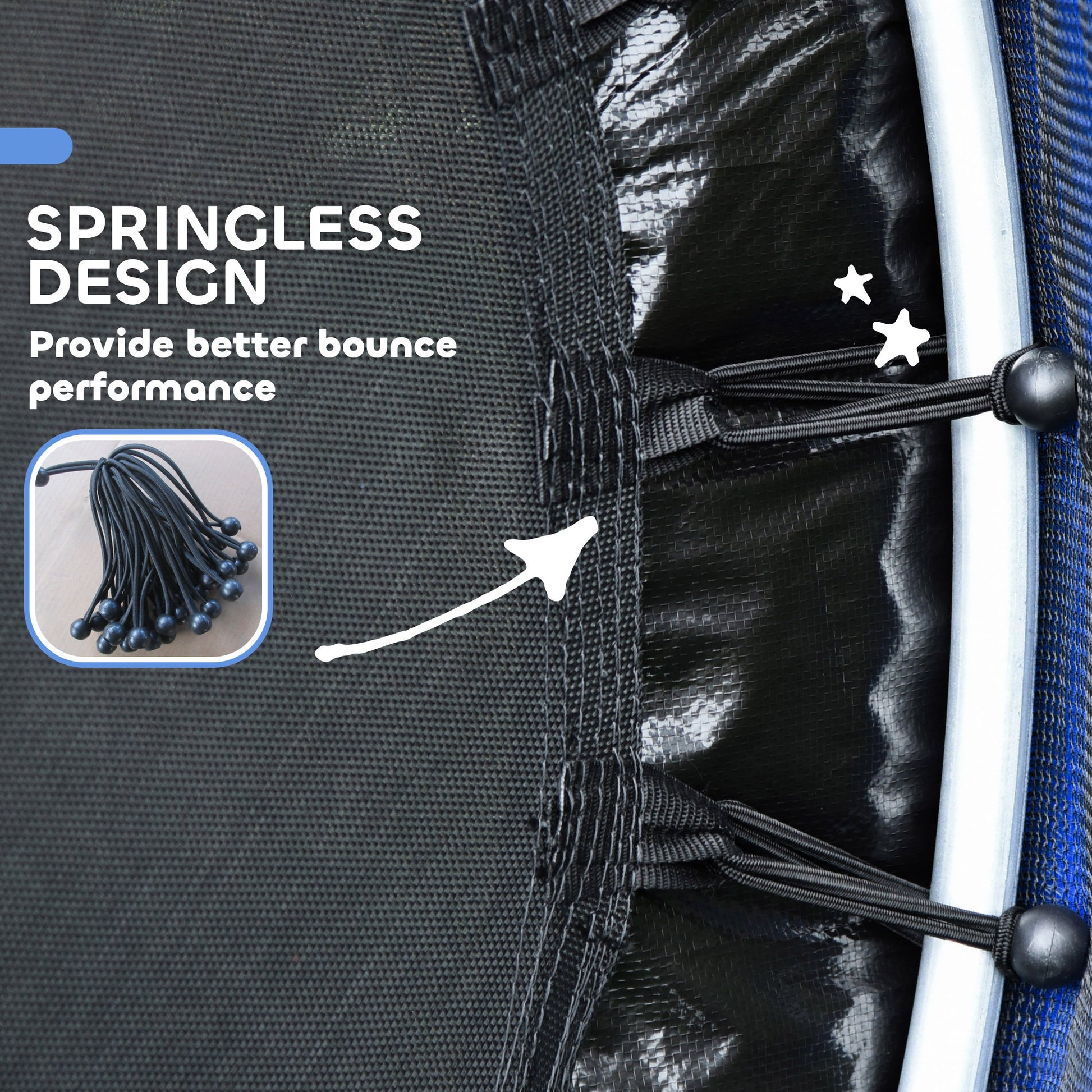 This trampoline provides endless fun – a great way to keep kids active. Made from steel, it's strong, stable and built to last, giving children daily entertainment. They'll bounce and play safely, thanks to the enclosed net and padded poles, which stop them from falling off, whilst its bungee design replaces traditional springs, which won't pierce through and cause injuries. It's a spacious play area - suitable for those who have lots of energy to burn.Specifications