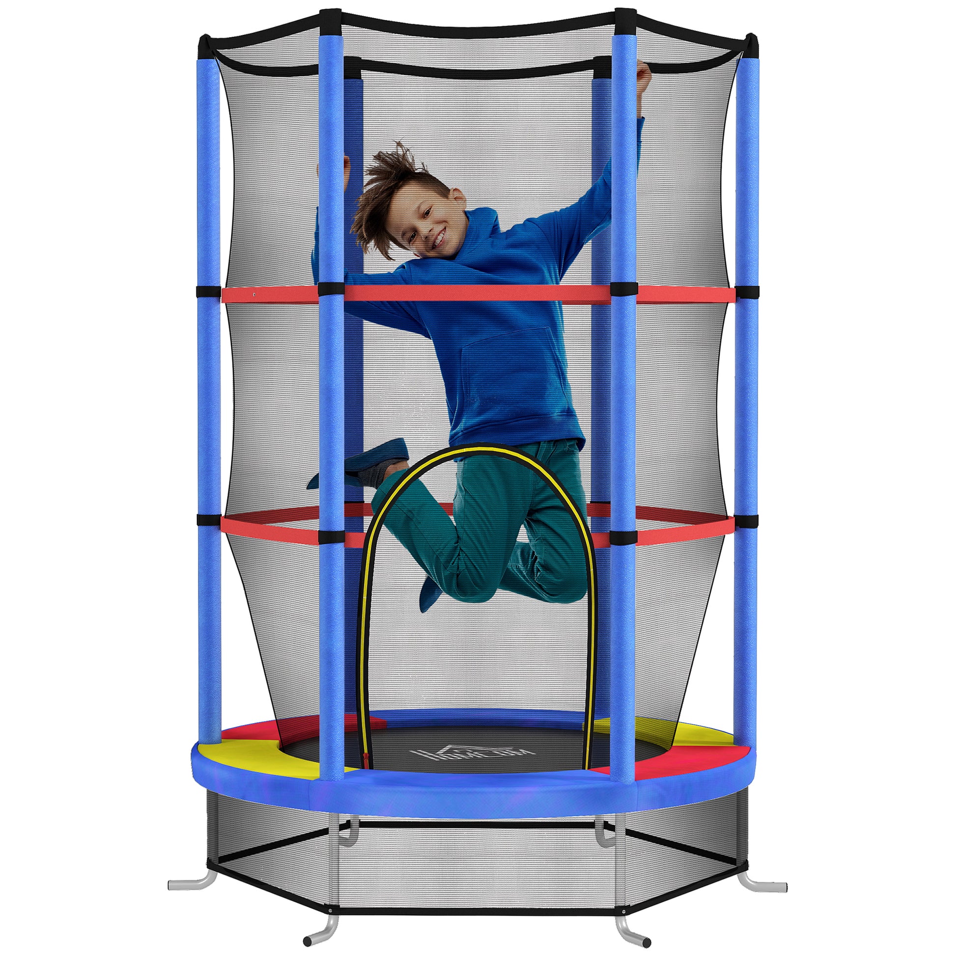 Kids Trampoline, with Enclosure Net, Steel Frame, for Ages 3-6 Years - MultiColoured