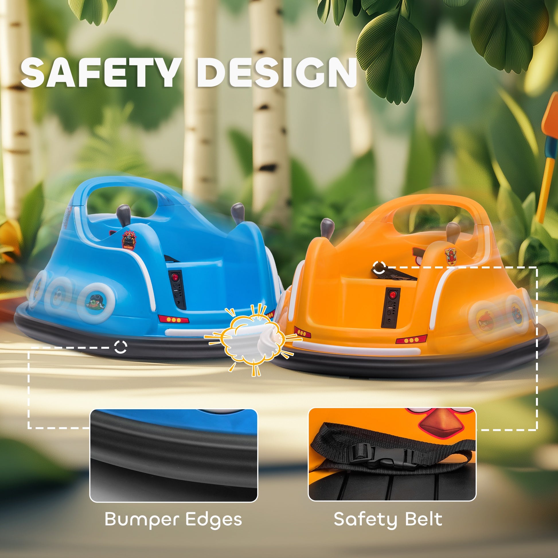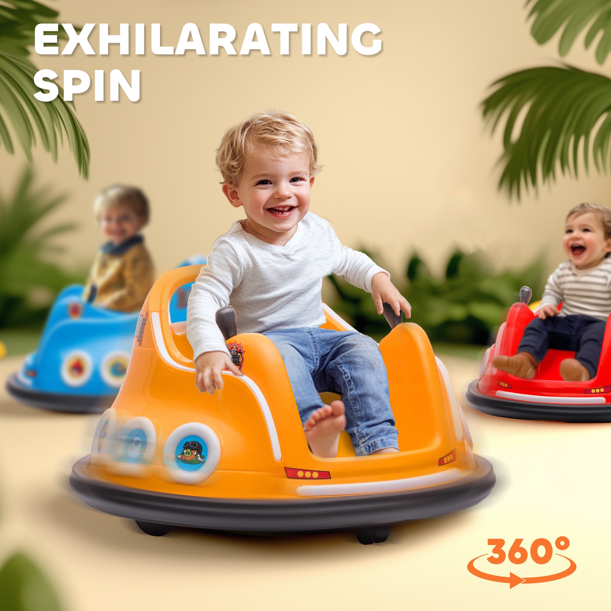 Dive into fun with the Angry Bird themed kids bumper car! Experience thrilling 360° spins and choose between handy dual control options: sleek remote control or adventurous self-driving with robust joysticks. Outfitted with a plastic shell and soft bumper edges for safe waltzing, this baby bumper car lights up playtime with built-in music, USB and LED lights.Specifications