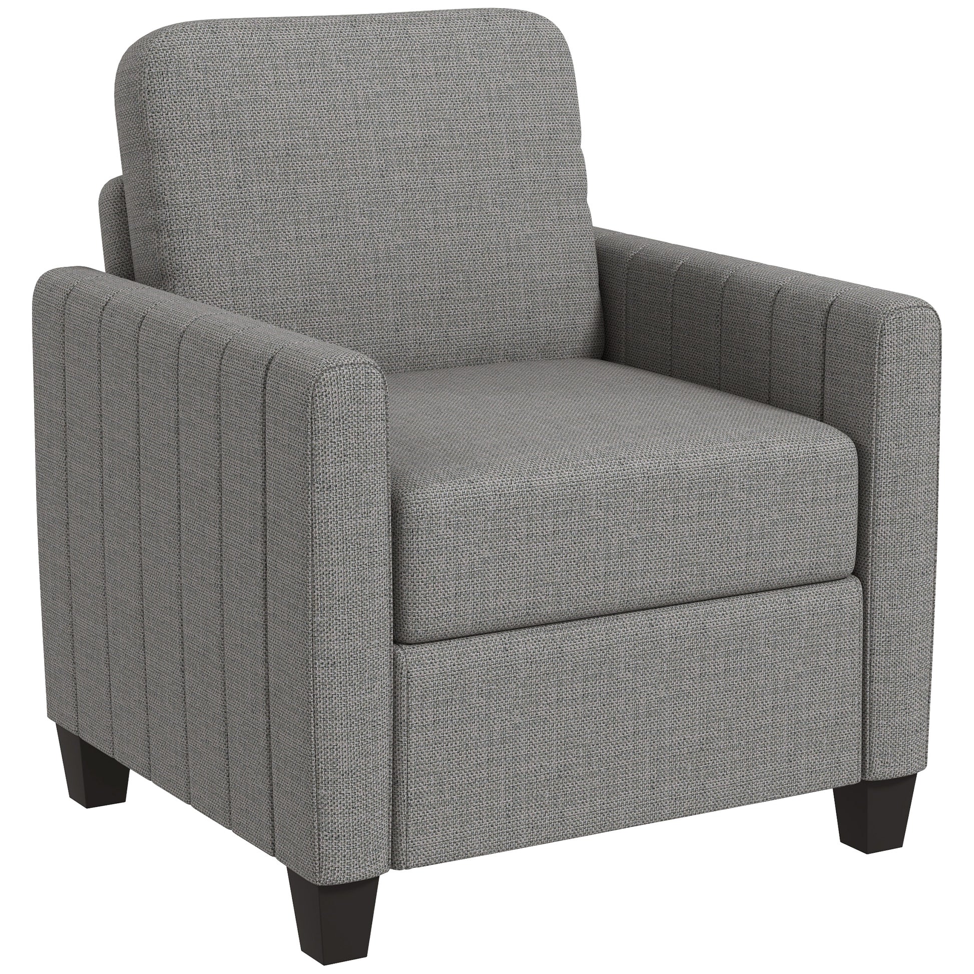 Armchair, Channel Tufted Modern Fabric Accent Chair, Comfy Upholstered Reading Lounge with Spring Cushion, Back Pillow, for Living Room, Bedroom, Office, Light Grey