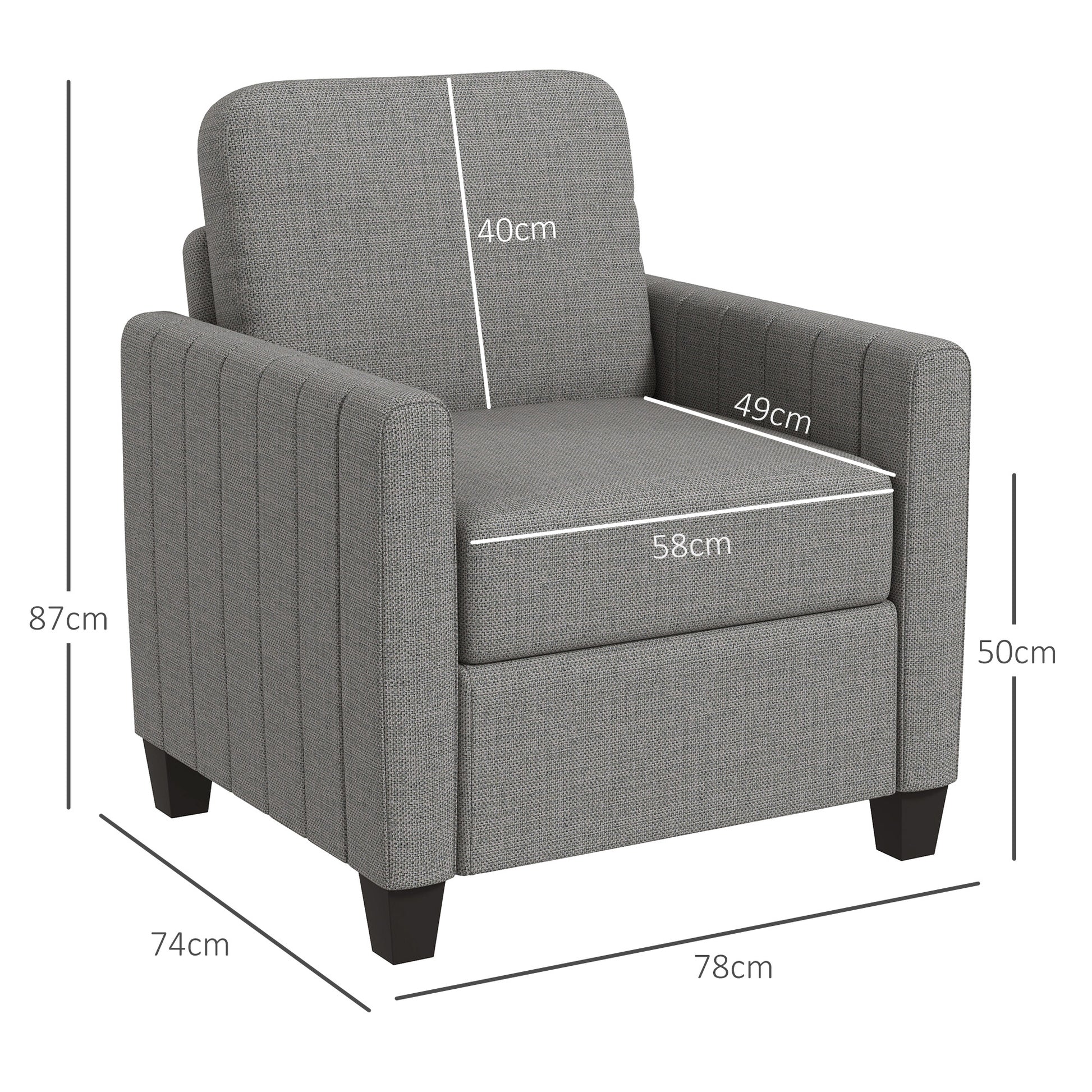 Discover cosy comfort with the armchair for living room, that fits perfectly in your bedroom or as a living room armchair. Enjoy long-lasting relaxation on the high-density foam and innovative pocket springs, all wrapped in a stylish burlap-feel fabric. Plus, the modern channel tufting adds a touch of elegance without overwhelming your space. The accent chair for living room is suitable for a snug chat or a serene reading spot!